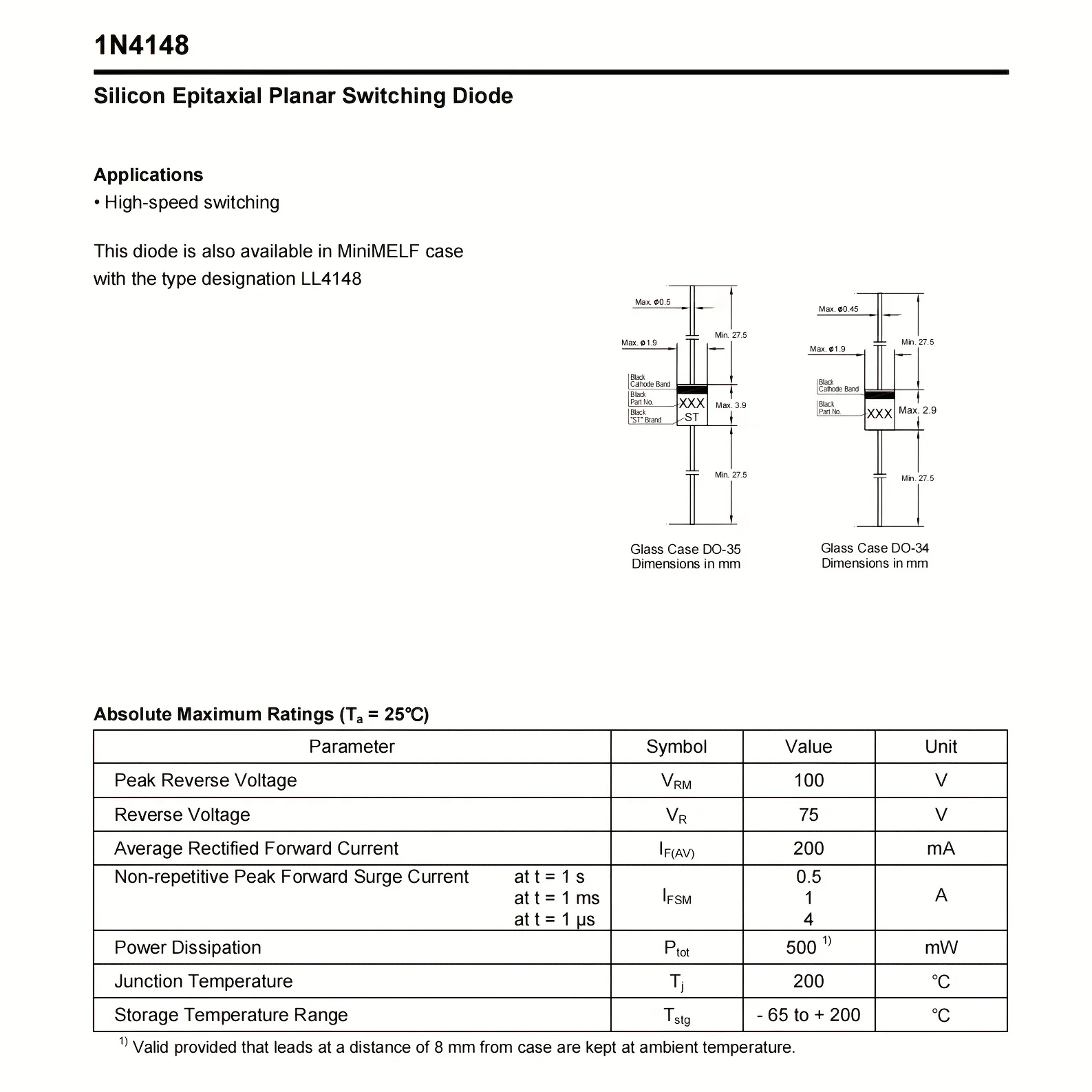 100PCS/ D0-35 1N4148 High-speed Switching Diodes New Original