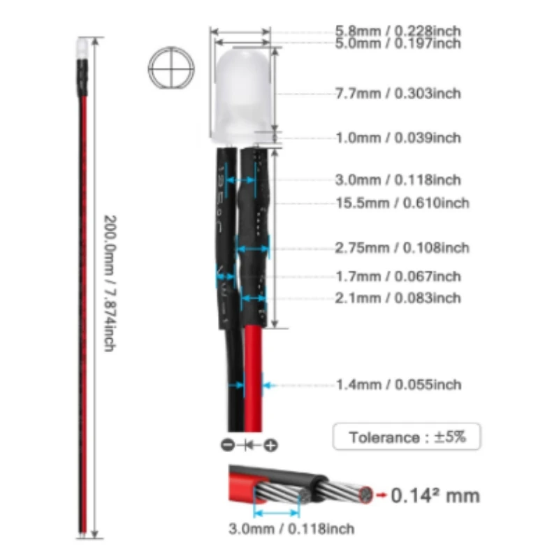 ALI shop - rezultati pretrage ... ... 20pcs 5mm Round led diode DC5V-12V Pre-Wired Water Clear Light Emitting Diodes Red Green Blue White Yellow orange purple ::: 2021 ::: :::