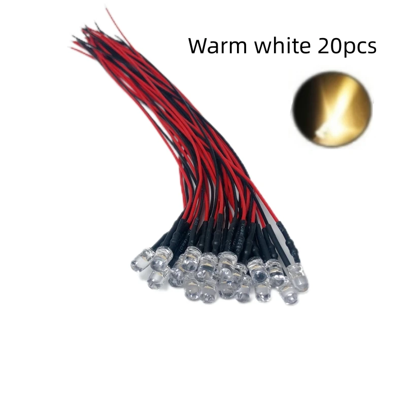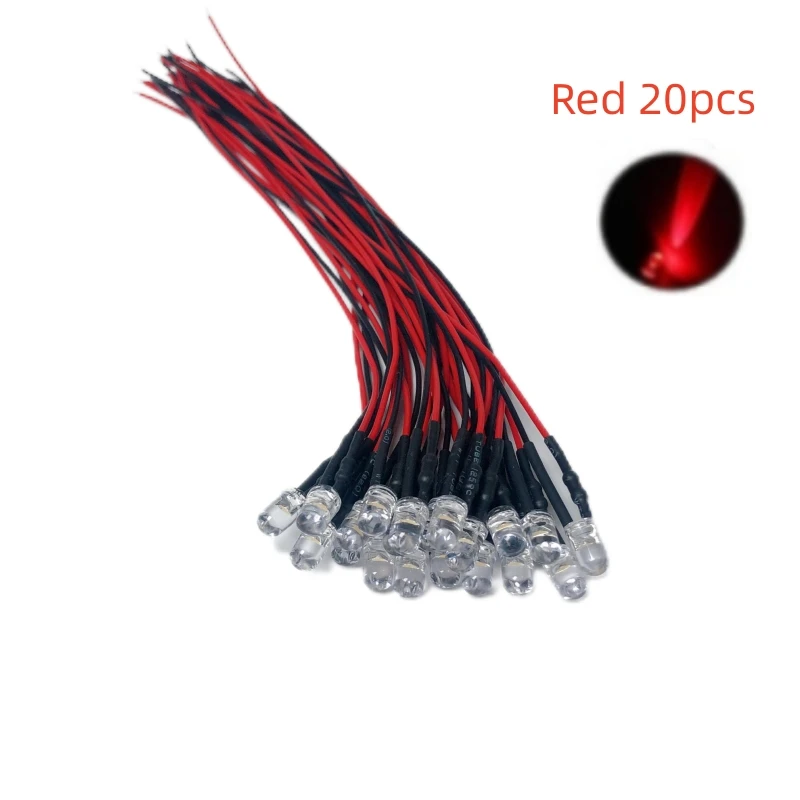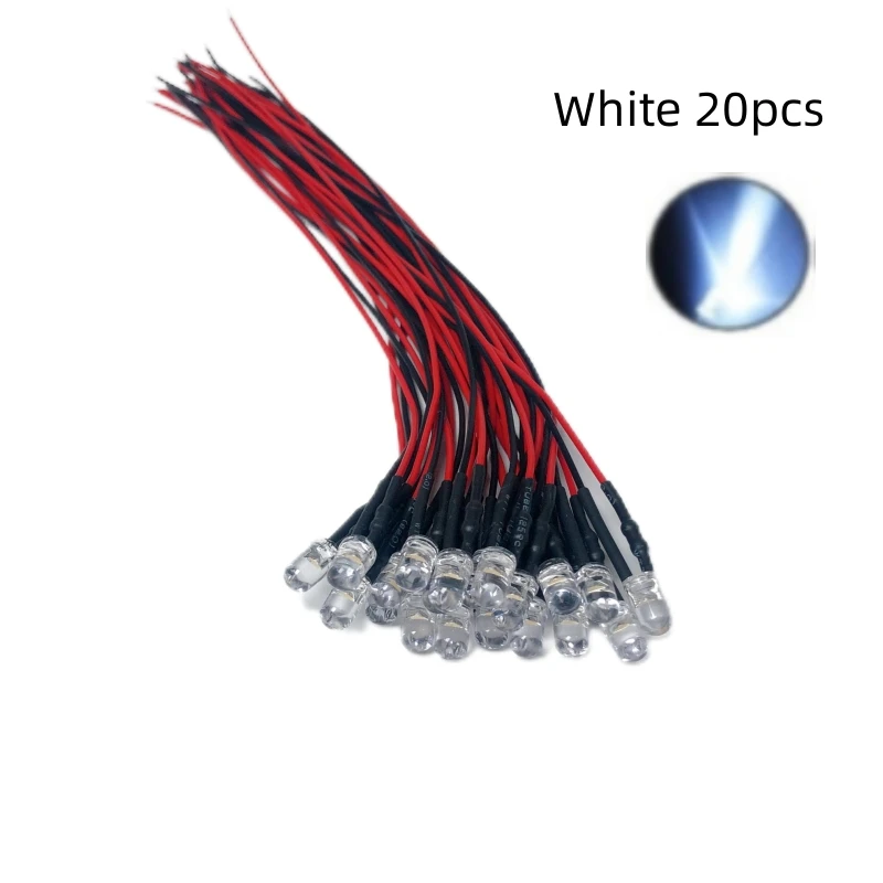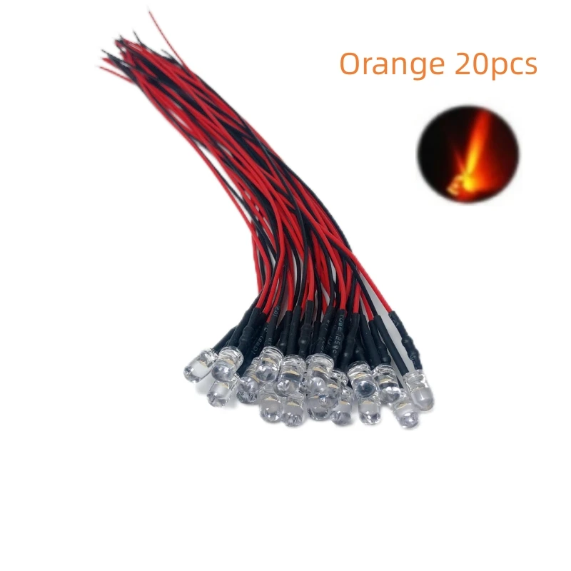 20pcs 5mm Round led diode DC5V-12V Pre-Wired Water Clear Light Emitting Diodes Red Green Blue White Yellow orange purple
