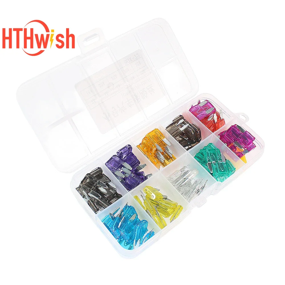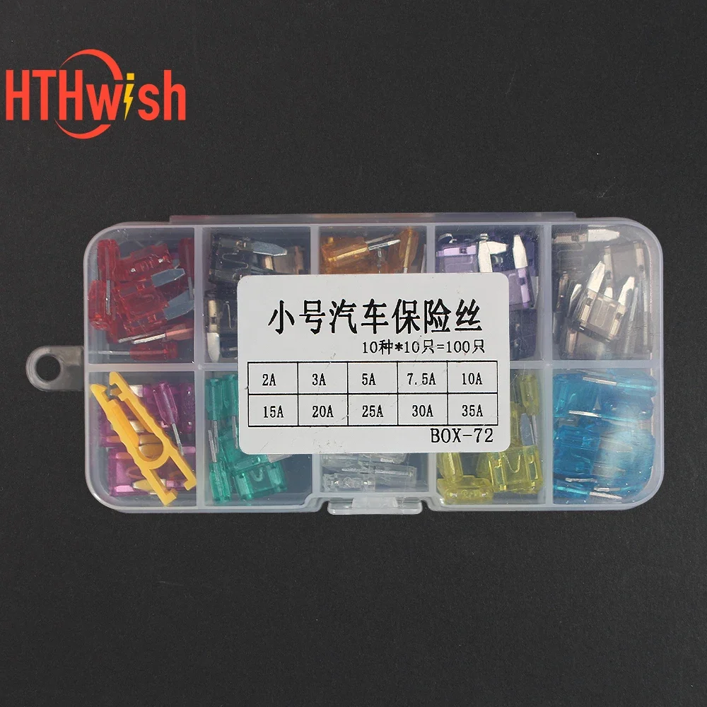 100Pcs/box Car Fuse Inserts with Clap Assorted Amp Ratings 2A 3A 5A 7.5A 10A 15A 20A 25A 30A 35A Blade Fuse Kit Box
