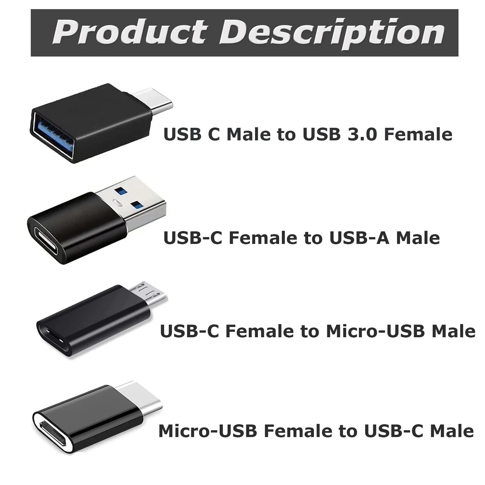 4pcs USB to USB C Adapter, USB C to USB 3.0 OTG, Micro USB to USB C For MacBook Pro, SamSung,Galaxy,Laptops and More