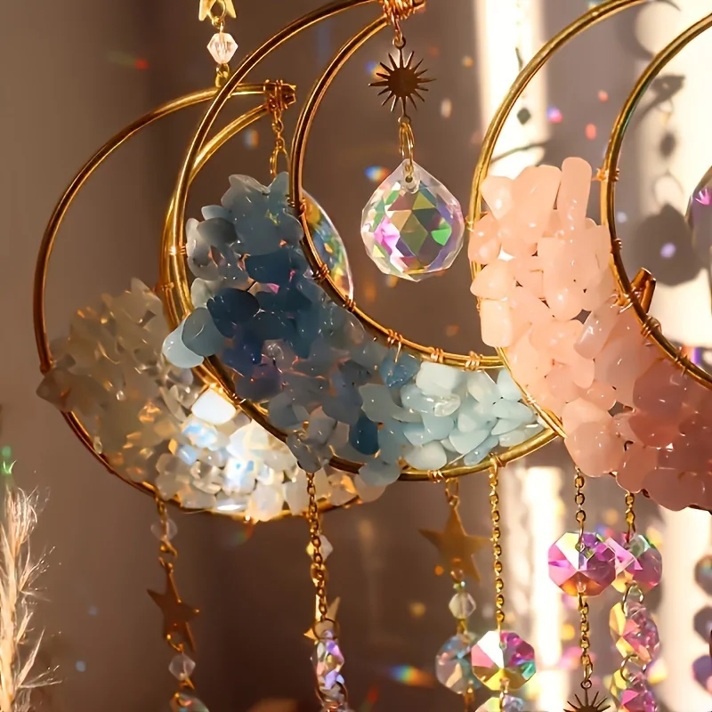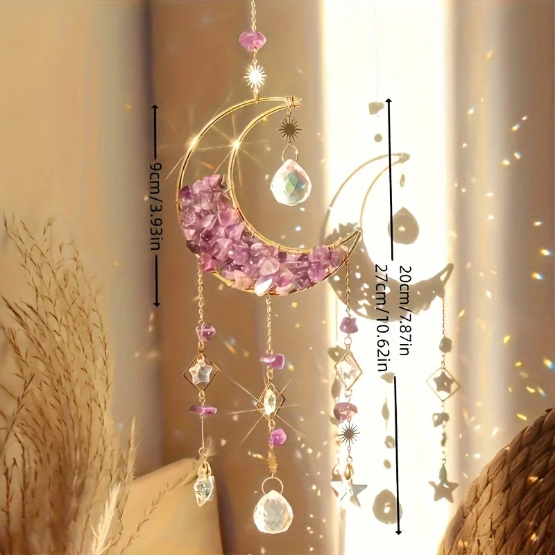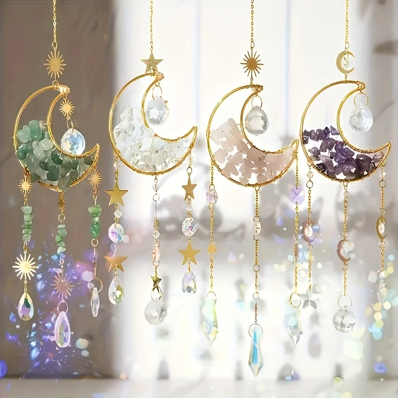 1/4pcs Moon Shaped Crystal Sun Catcher, Car Pendant, Magic Rainbow Hanging Wall Decoration, Fantasy Crystal Pendant, Rainbow
