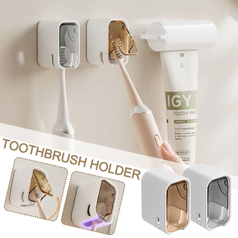 Portable Dustproof Toothbrush Holder Flip-top Wall Mounted Toothbrush Rack Toothbrush Storage Box