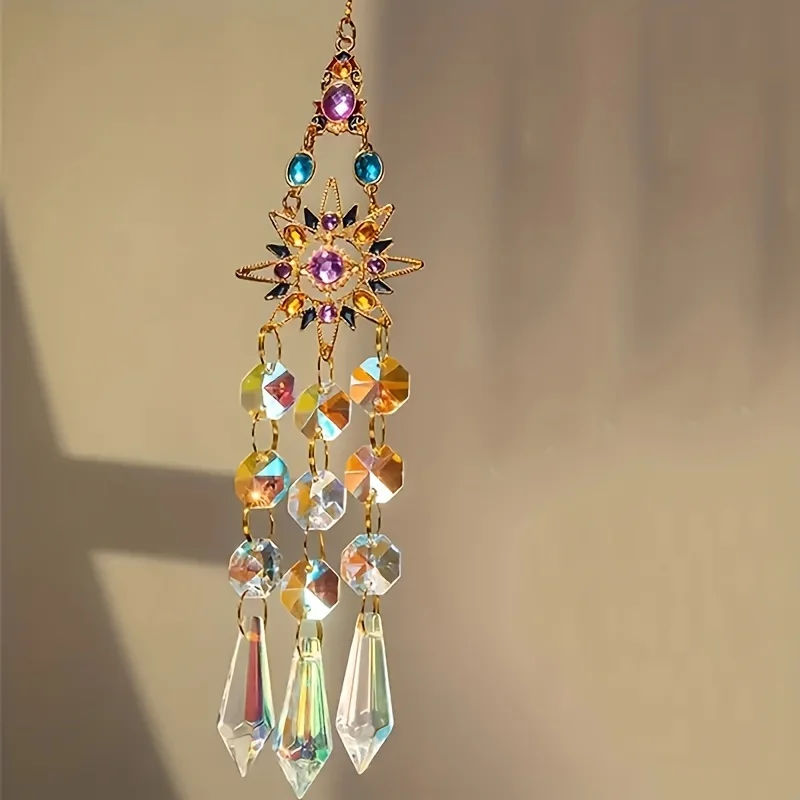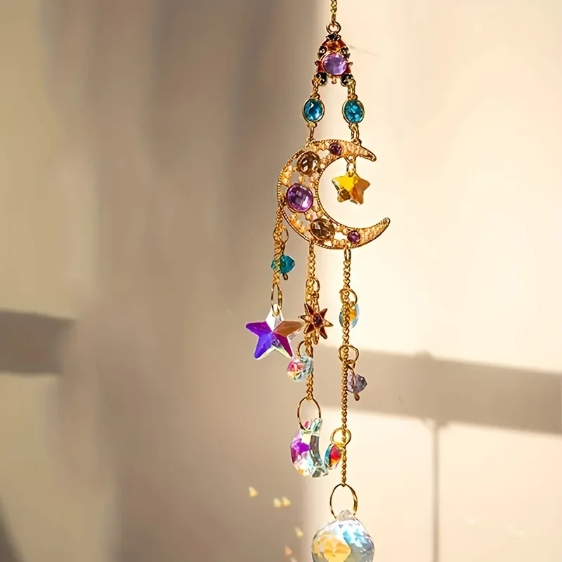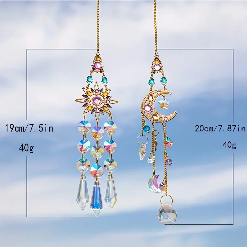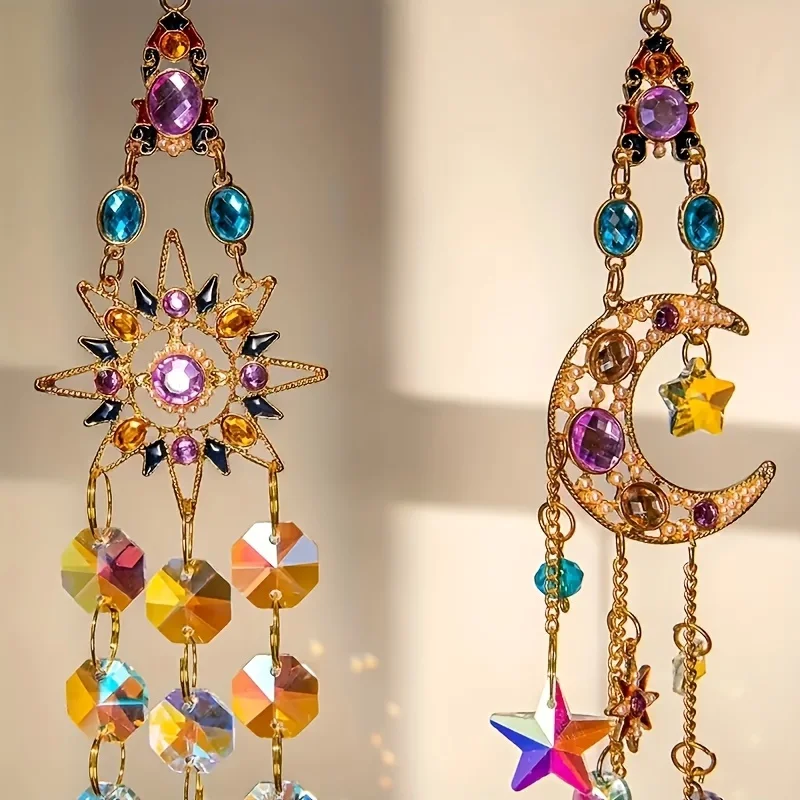 1pc Suncatcher With Crystals, Colorful Crystal sun moon Suncatcher Window Hanging For Garden Yard Patio Outdoor Decor