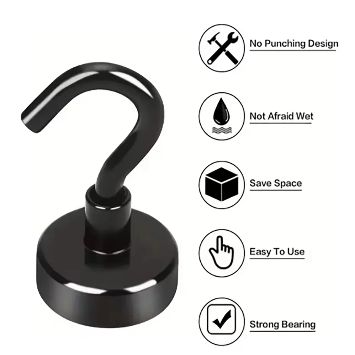 6Pcs Strong Magnetic Hooks Punch-Free Wall Magnet Hook for Keys Coat Hanging Hanger Kitchen Fridge Bathroom Office Organizer