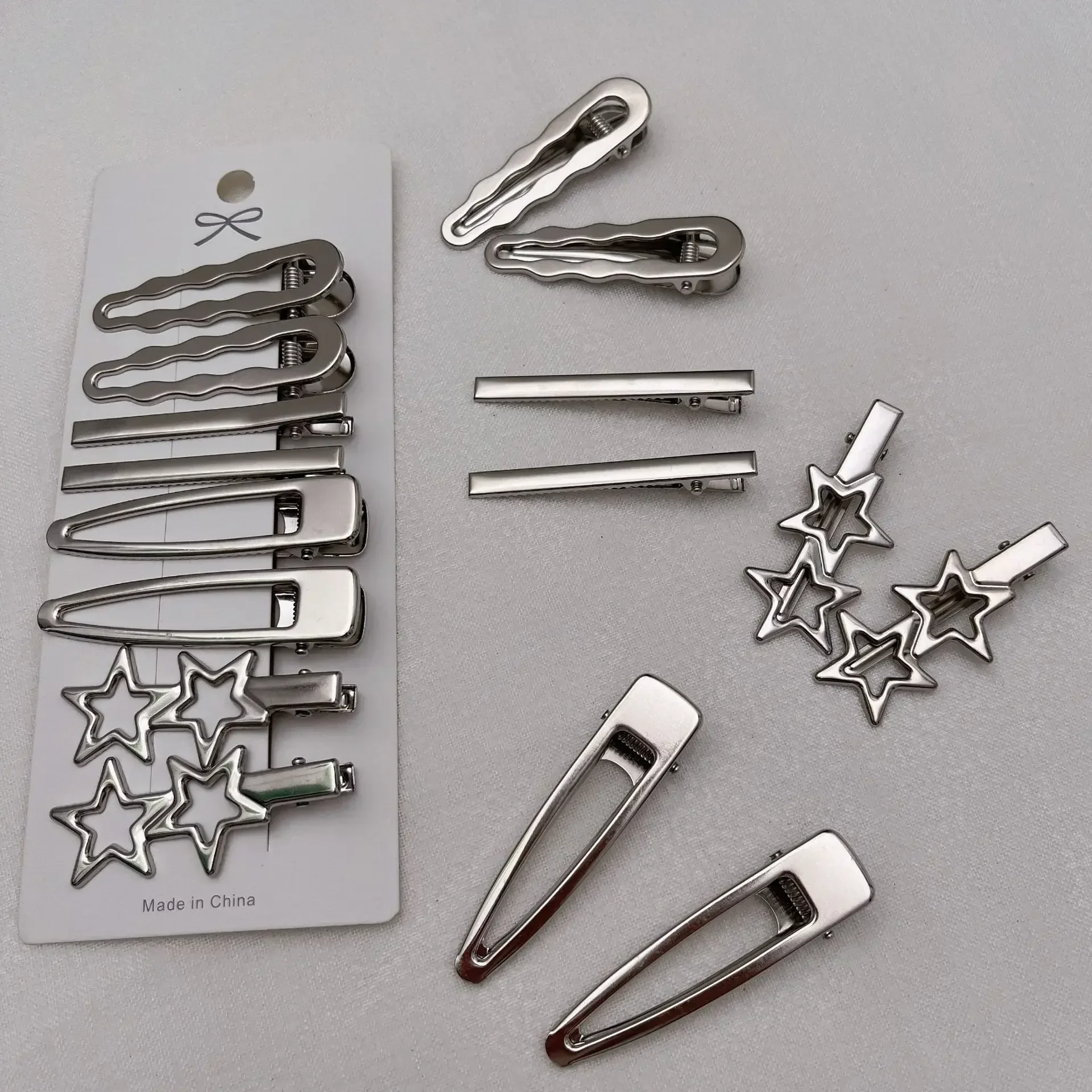Sliver Metal Hair Clips Women Girls Y2K Duckbill Hairpin Personality Bangs Side Headwear Barrettes Hairclip Styling Accessories
