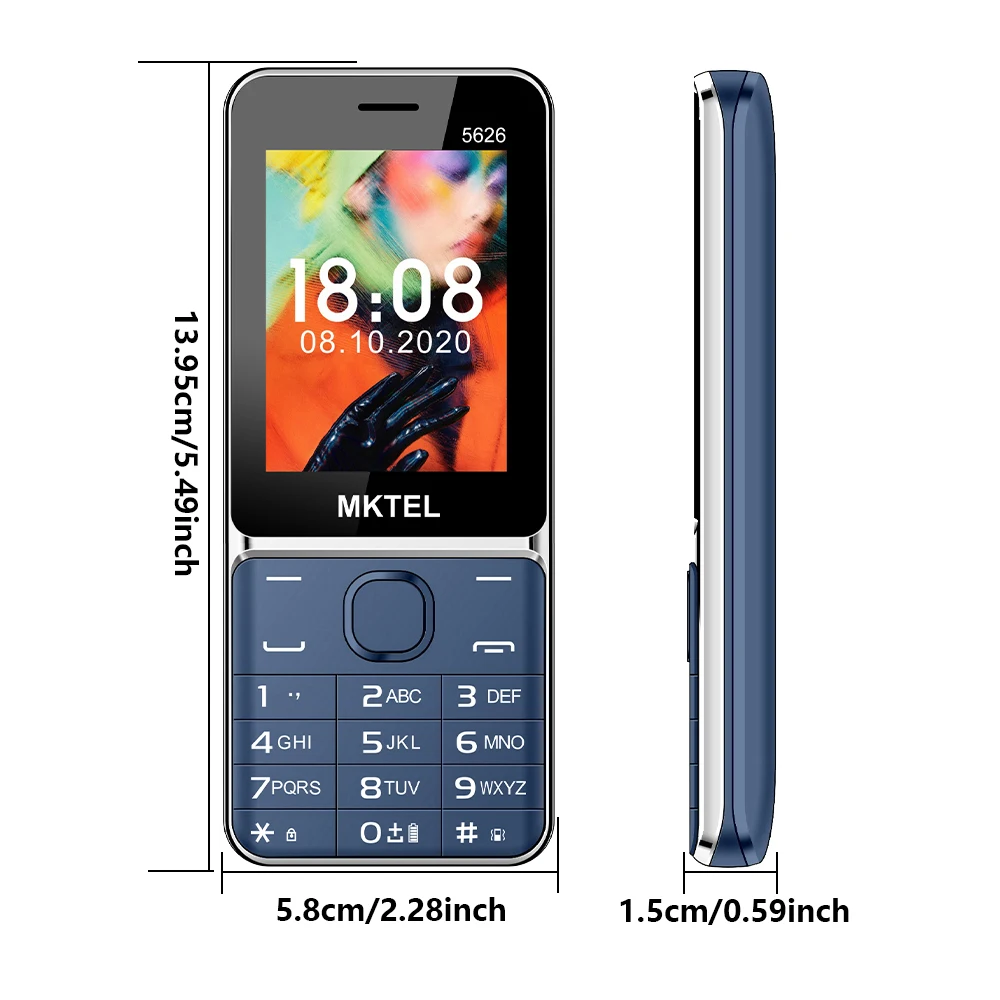 MKTEL 5626 Feature Phone 2.8'' Display Large Keypad 1800mAh Big Battery Bluetooth Music Flashlight 0.08MP Camera