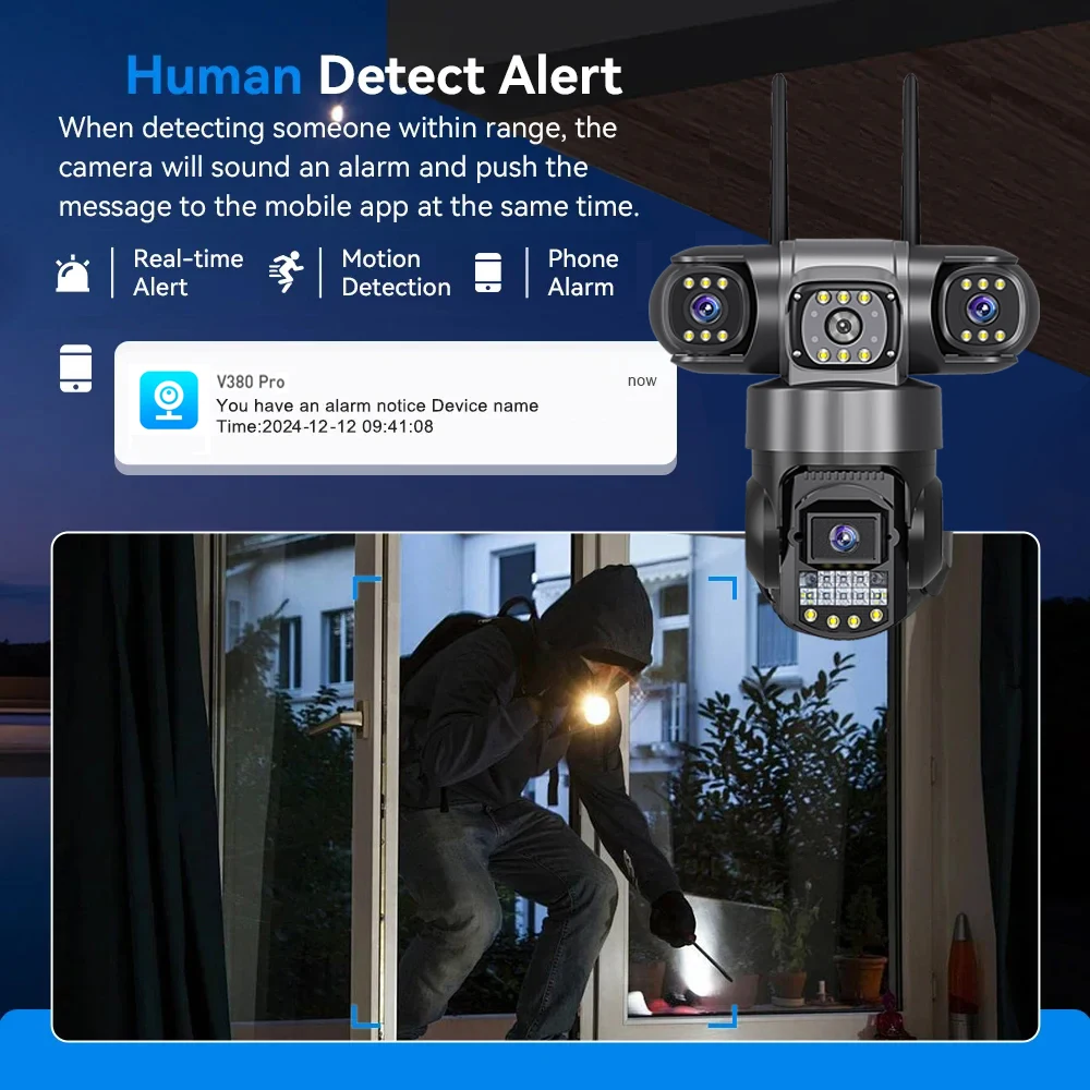 V380 Pro WiFi IP Camera Outdoor 12MP 6K Triple Lenses Triple Screens Security Video Monitor Night Vision Waterproof CCTV Cameras