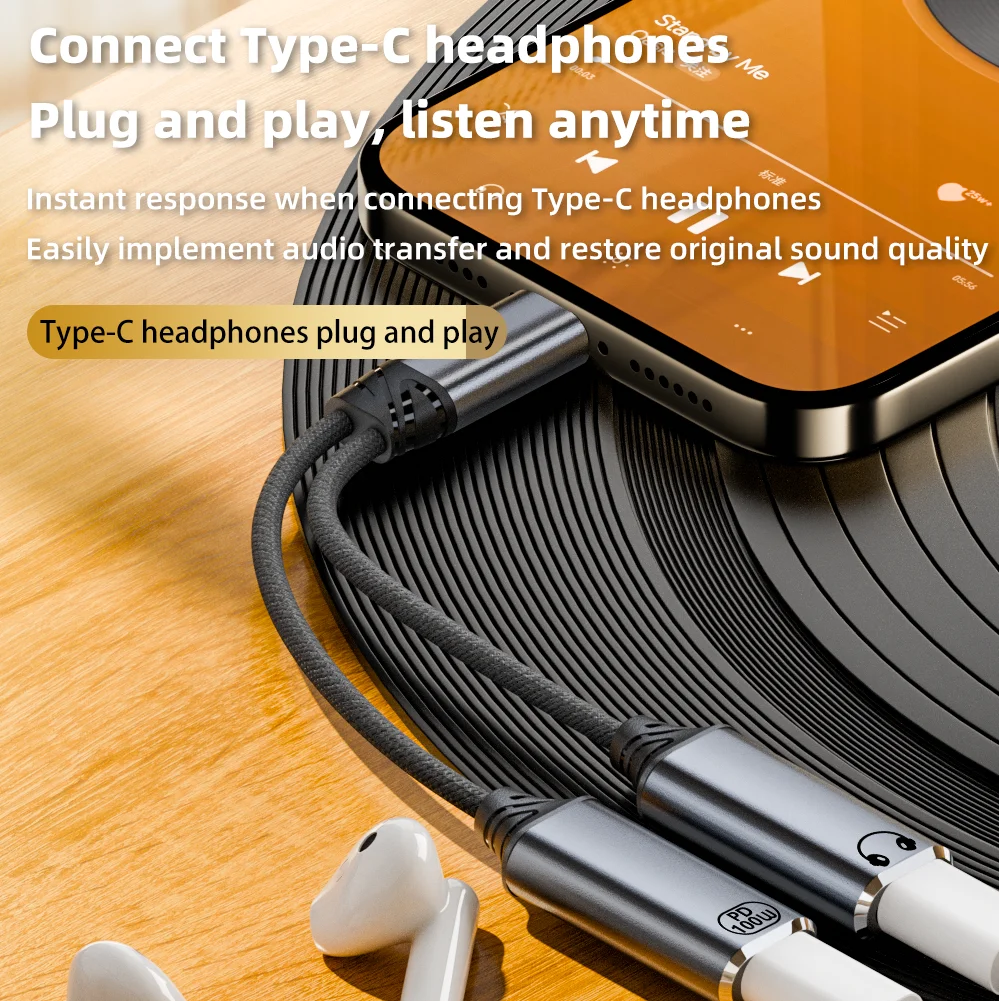 2 IN 1 USB C Splitter to Dual Type-C Headphone Jack Audio Adapter PD 100W Fast Charger for Samsung iPhone 15/16 Huawei Xiaomi