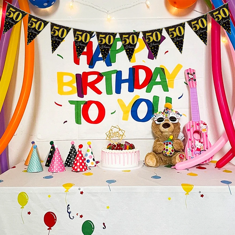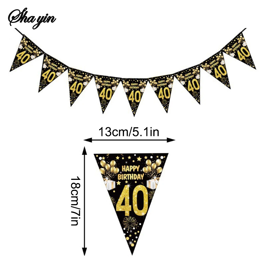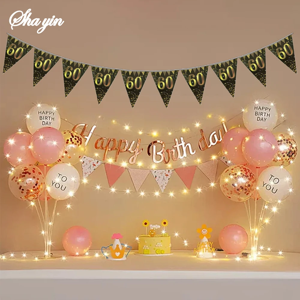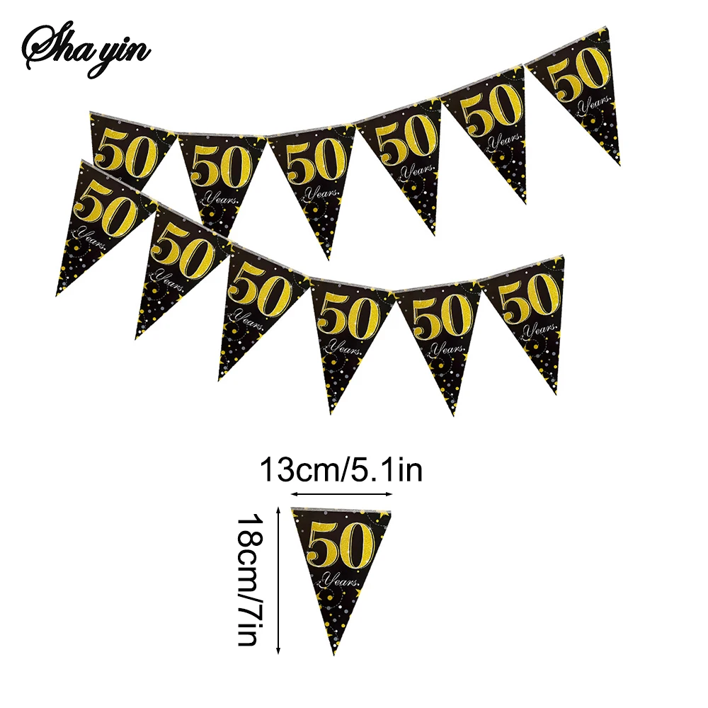 Birthday Triangle Flag, Digital Age, Black Gold Triangle Flag, Pulling Flag, Party Supplies