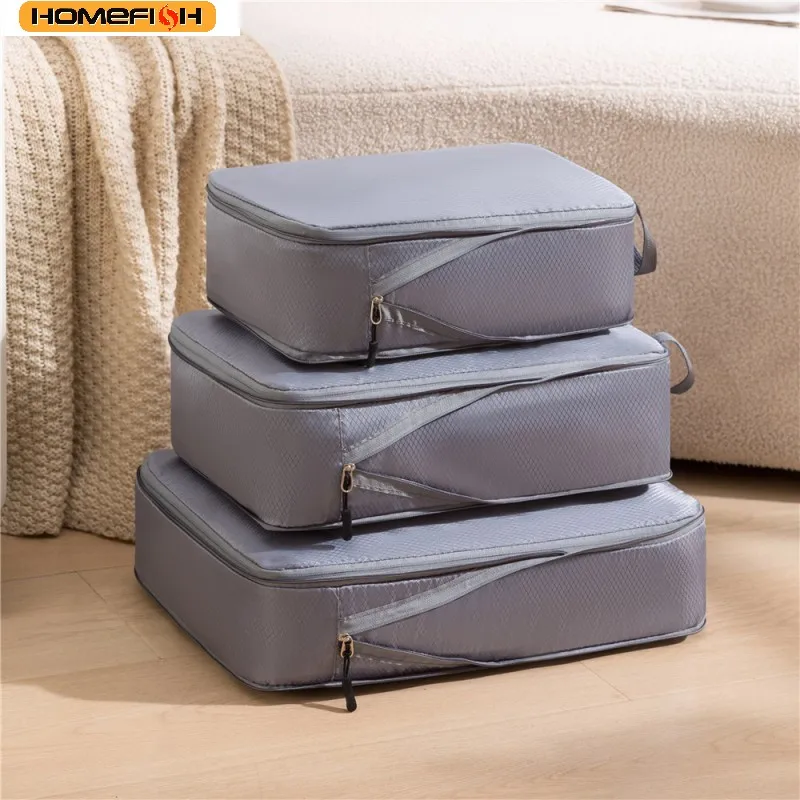 HOMEFISH 3Pcs/Set Travel Compressible Packing Multifunction Travel Storage Bag Waterproof Suitcase Portable Luggage Organizer