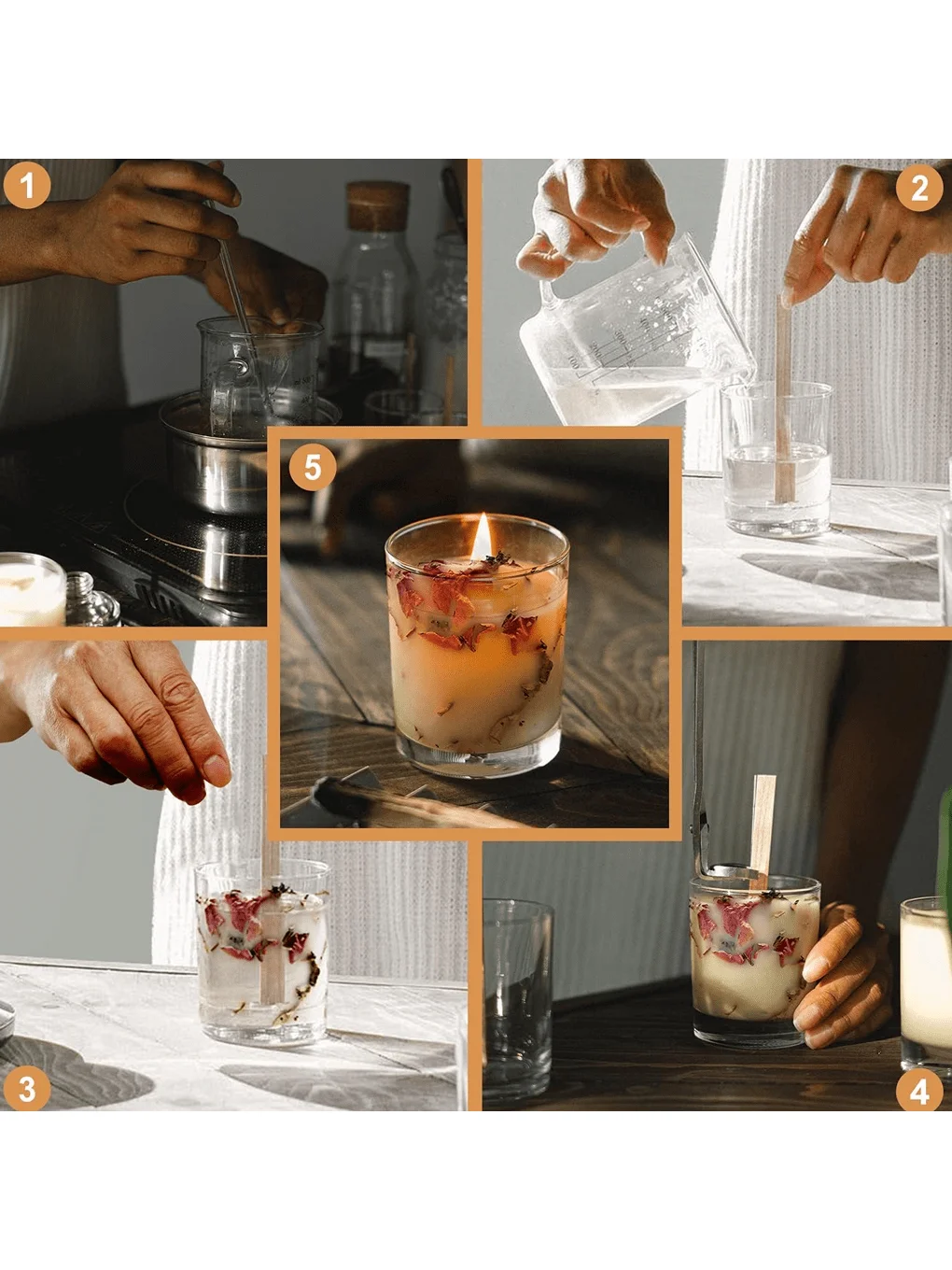 100 Pieces/200 Pieces for Cherry Wood Candle Wicks for Candles, Wooden Candle Wicks, Smokeless Ringing, with Iron Brackets, Candle Glue Dots, Candle Warning Labels DIY Candle Making