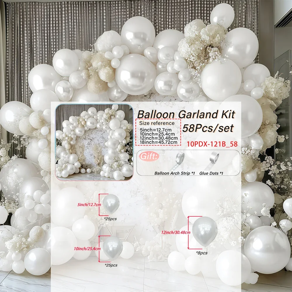 58/116pcs Pearl White,Balloon Arch Kit,Wedding,Birthday Party,Anniversary,Bridal Gift Party,Christmas,Retirement,Proposal