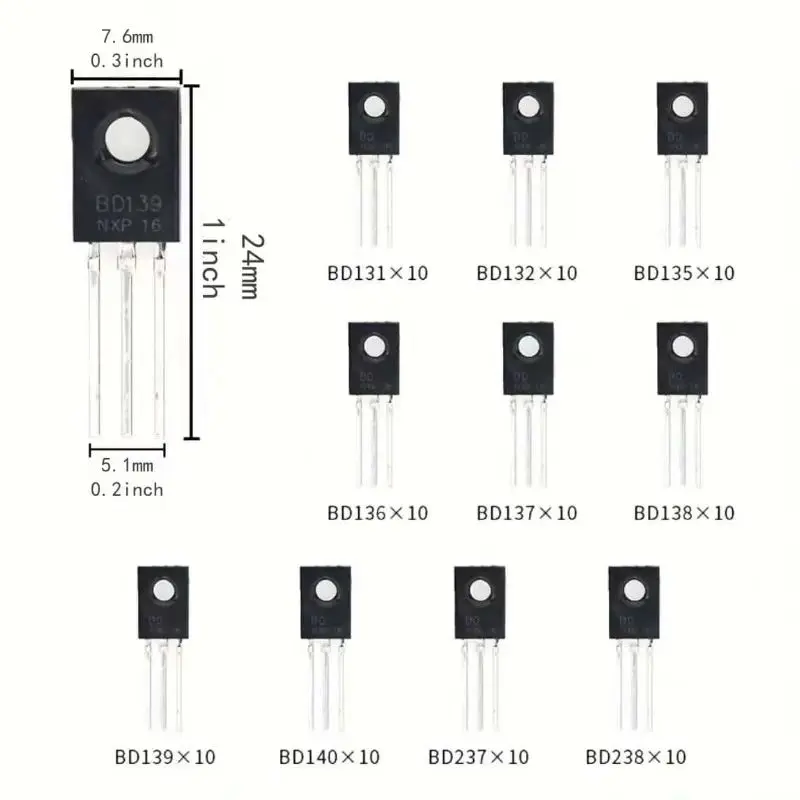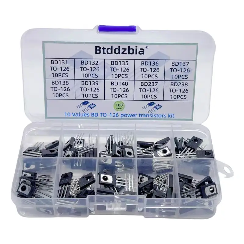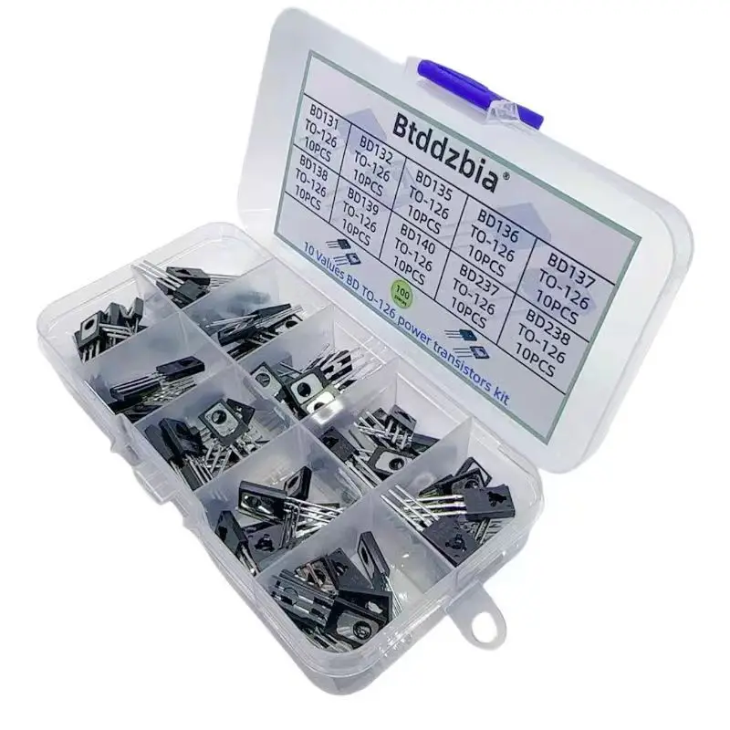 100pcs TO126 package transistors BD131-BD139/BD237/BD238, available in 10 different models, with DIY electronic component kit