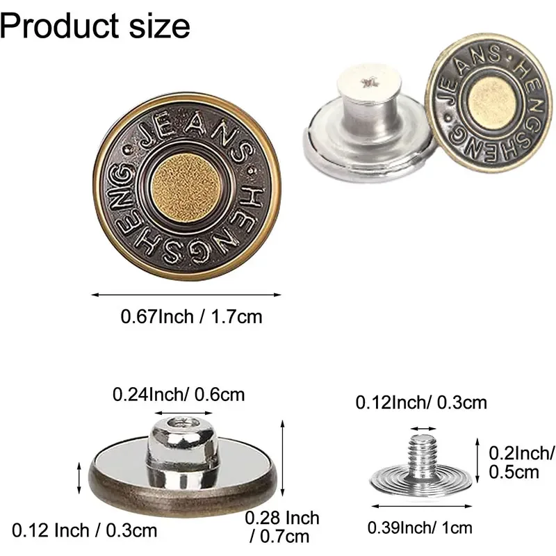 5/10/20Pcs Jeans Buttons Replacement 17 mm No-Sew Removable Metal Buttons Snap Denim Button Repair for Jeans Clothing Supplies