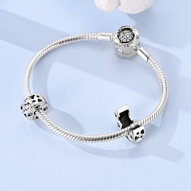 Original 925 Sterling Silver Clip Charm Inlaid Zircon Cat Butterfly Charm Silicone Spacer Beads For Women Bracelet DIY Jewelry