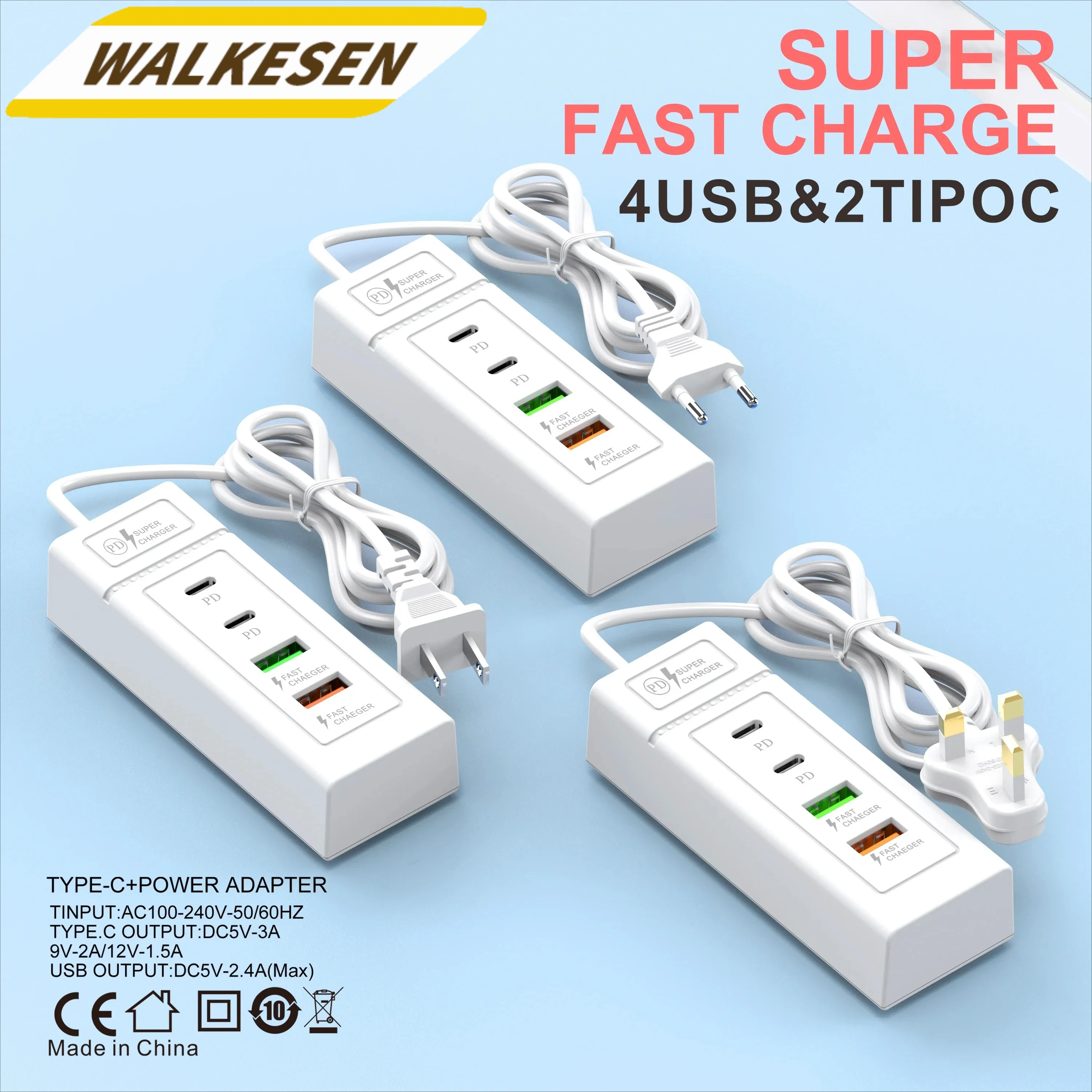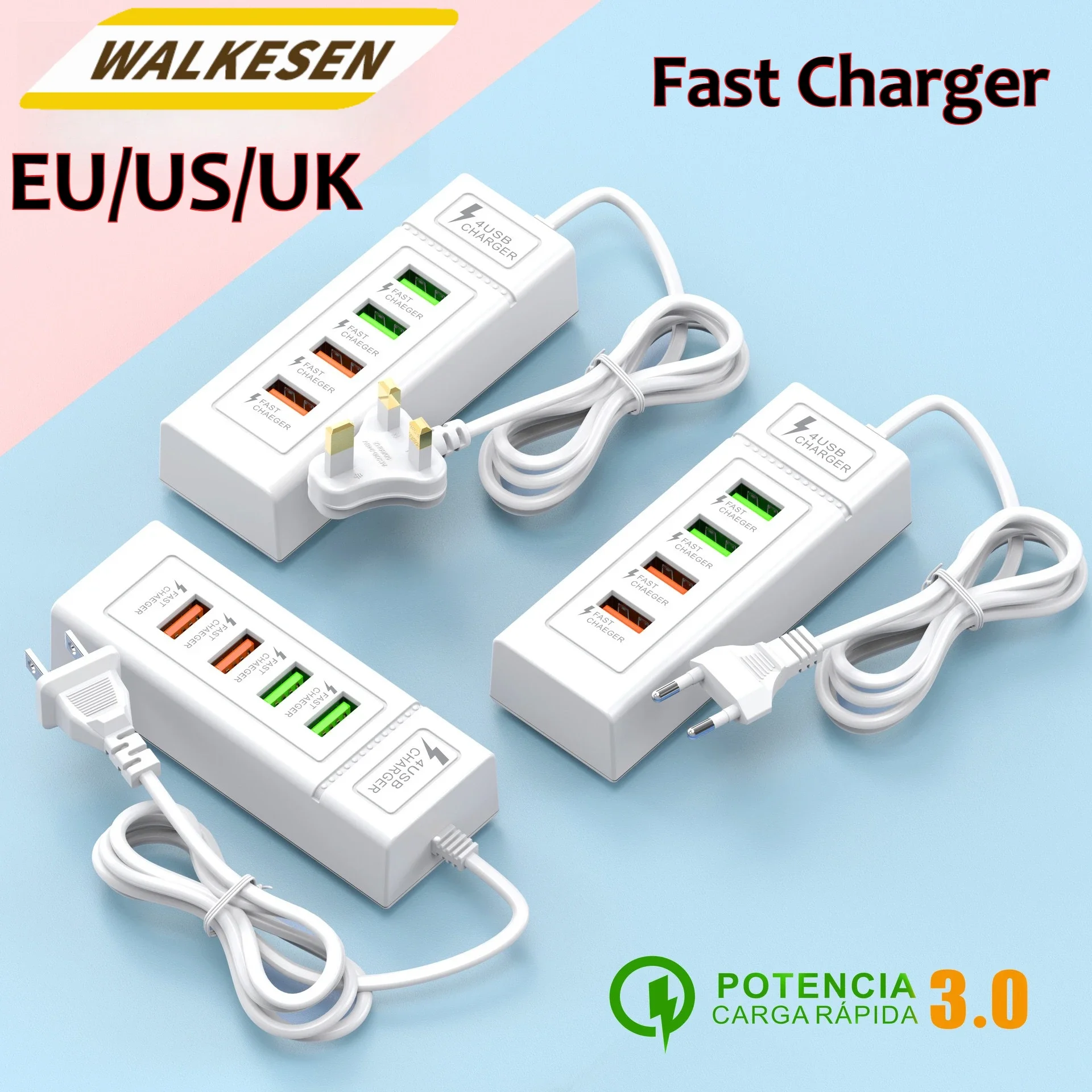 USB Charger Fast Charging 4 Port Type C Phone Charger Wall Adapter For iPhone 15 14 Samsung Xiaomi 14 Huawei QC3.0 Power Adapter