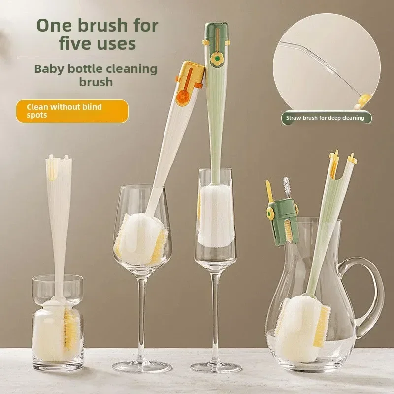 5-in-1cup Washing Tool for Household Use Multifunctional Cup Brush Water Cup Thermos Cup Brush Milk Bottle Cleaning Sponge Brush