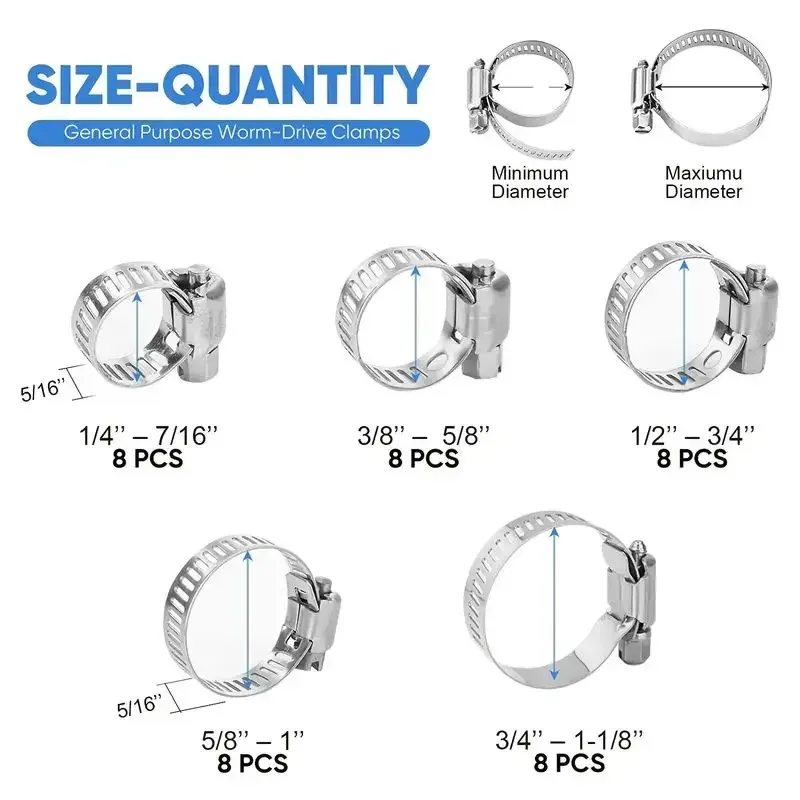 ALI shop - rezultati pretrage ... ... 40PCS Hose Clamp Set - Stainless Steel Worm Gear Clamps For Pipes, Intercoolers, Plumbing, Tubes & Fuel Lines (1/4'' - 1-1/8'') ::: 2021 ::: :::