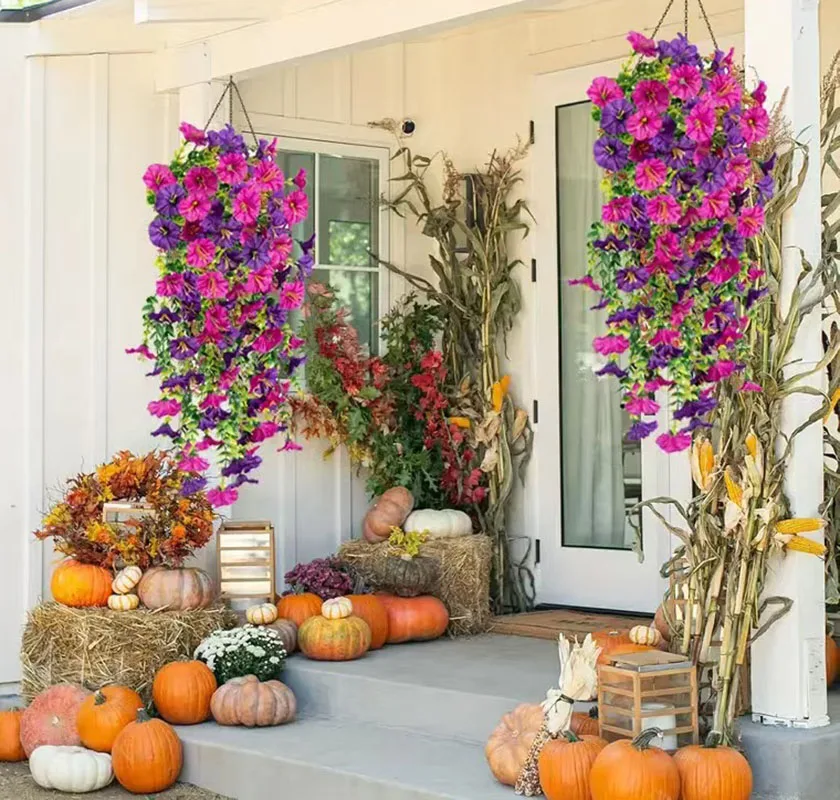 Artificial Hanging Flowers Plants Faux Morning Glory Long Vines UV Resistant Realistic for Home Garden Decoration