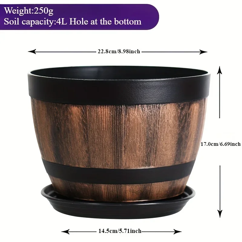 ALI shop - rezultati pretrage ... ... Retro whiskey barrel planter, resin striped garden flower pot with drainage holes and saucer, oval plant container ::: 2021 ::: :::