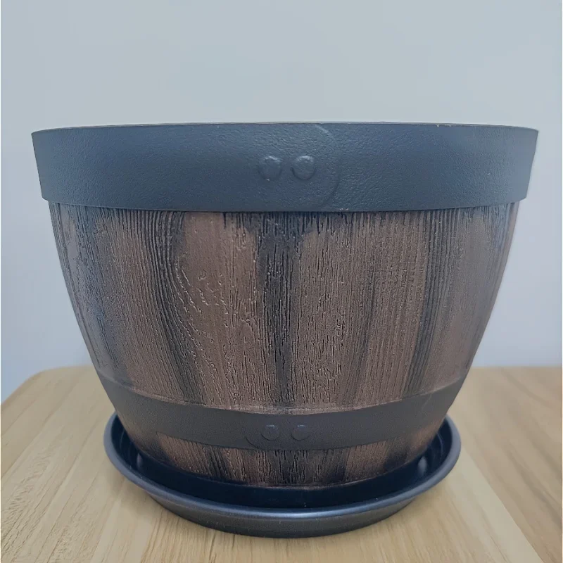 aliexpress , ali , shop , ali shop , online , prodavnica , online shop , online prodavnica , kupujem , prodajem , Retro whiskey barrel planter, resin striped garden flower pot with drainage holes and saucer, oval plant container