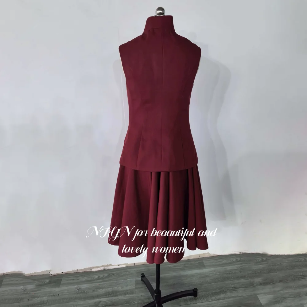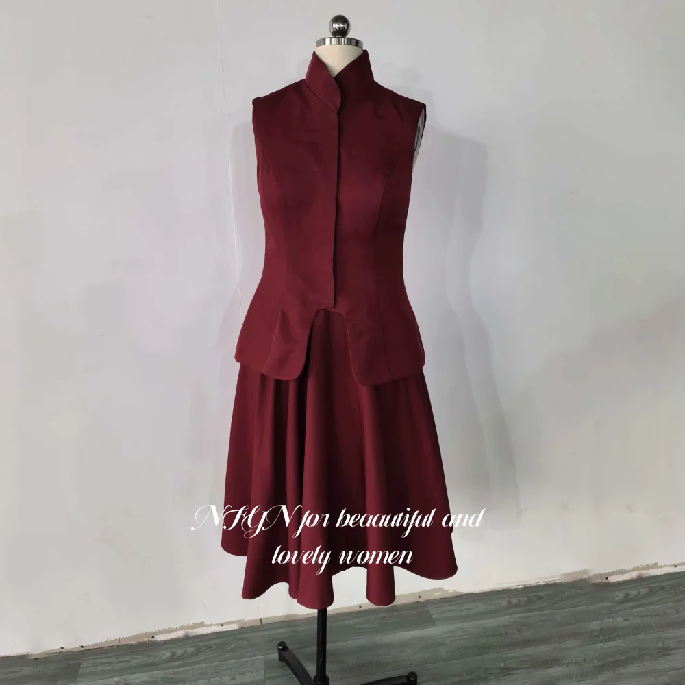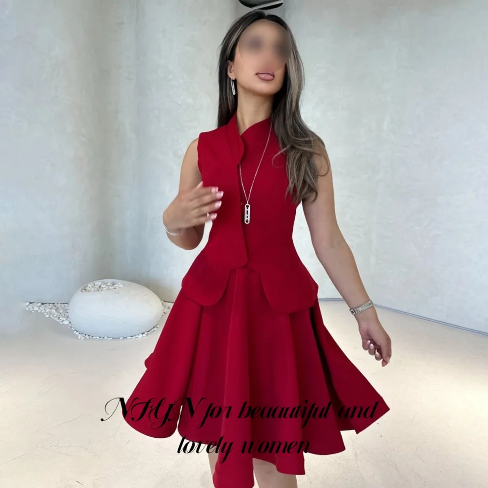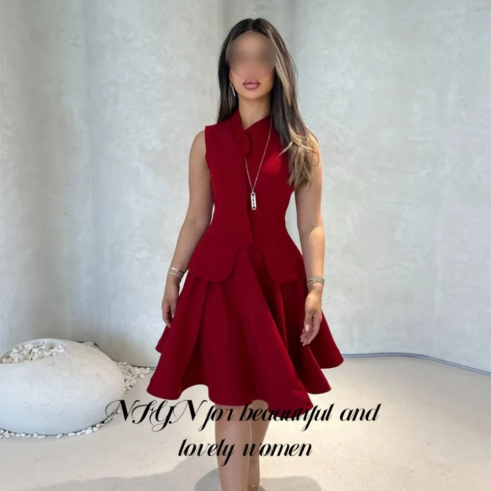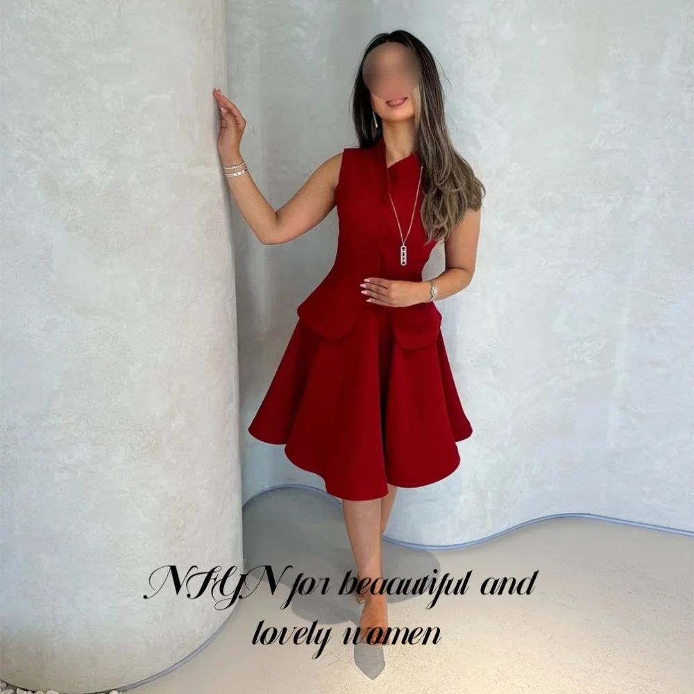 NFYN Red Elegant Prom Gown Sleeveless Satin Prom Dress Mini Skirt Chic Woman Evening Dress for Woman вечерние платья Customized