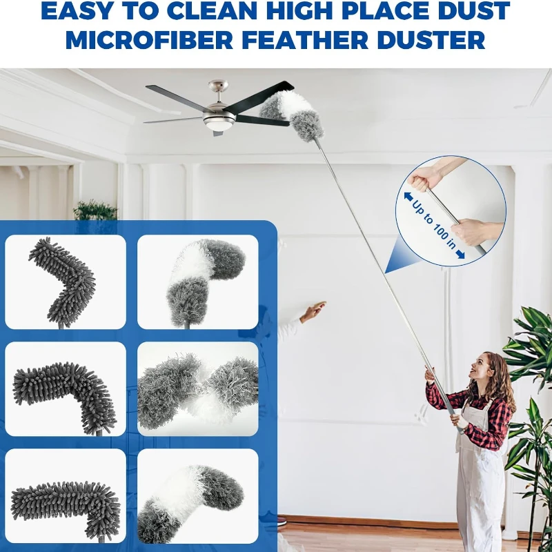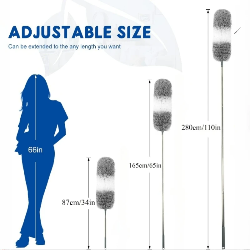 2.8M Duster Brush Microfiber Duster Extendable Curved Ceiling Cleaning Broom Household Electrostatic Dust Collector