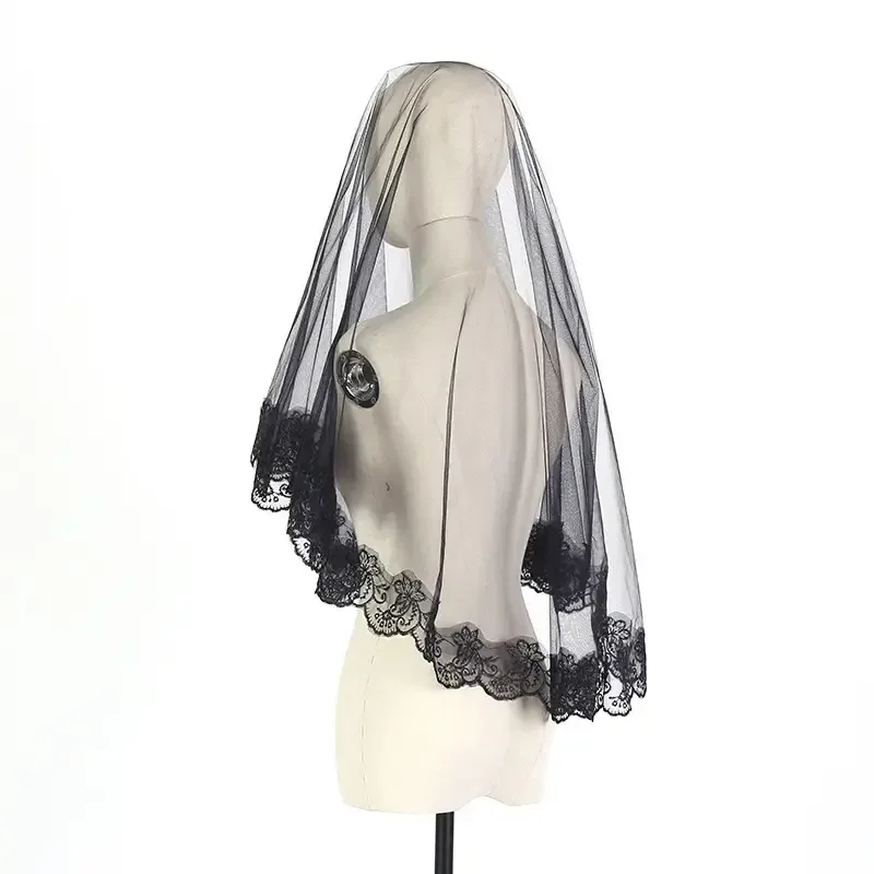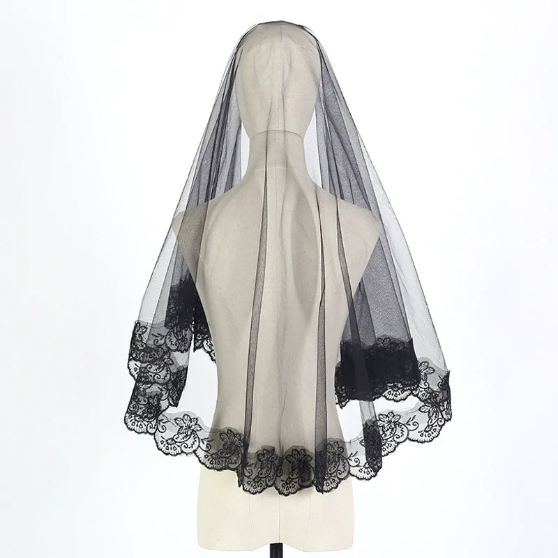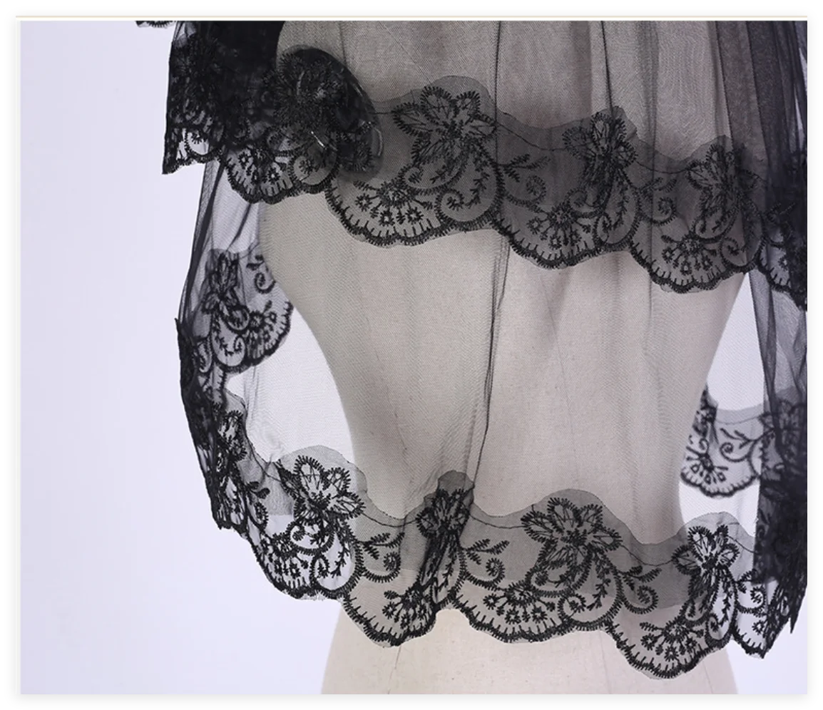 Wedding Veils For Bridal Lace Embroidery Edge Tulle White Black Veil For Halloween Bachelorette Party Headdress Accessories