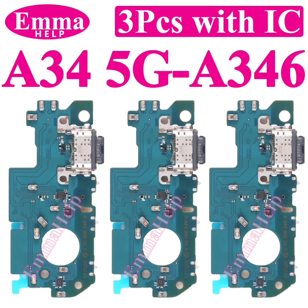 3Pcs USB Charging Port Board Flex Cable for SamSung A15 A55 A35 A05 A15 A24 A34 A54 A04 A145P A145F A146B A146P Charger Board