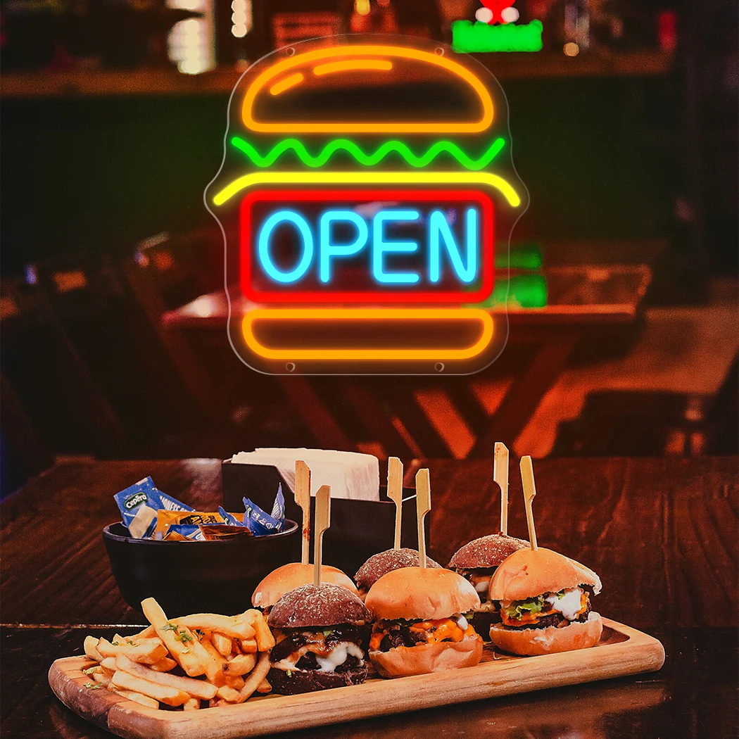 Hamburger Neon Sign Led neon lights for Fast Food Restaurant Snack Bar Luminous Business Sign Facade Wall Decoration light