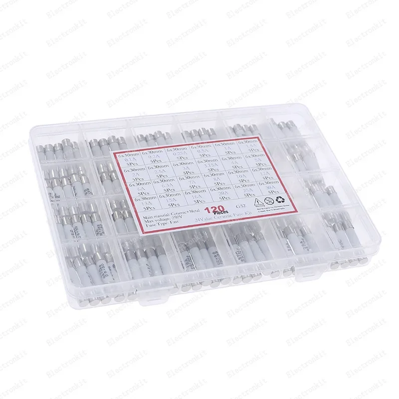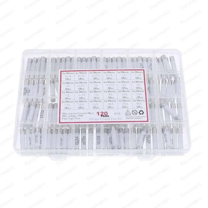 120Pcs 24Value 6x30mm Fast Blow Ceramic Fuse kit set 250V 0.1A 0.2A 0.5A 1A 1.5A 2A 3A 3.15A 4A 5A 6A 7A 8A 10A 15A 16A 20A 30A