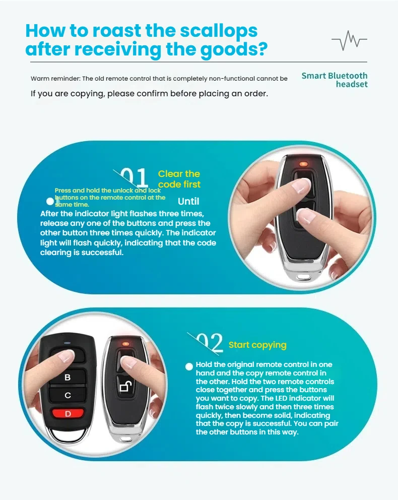 Wireless 433/315MHz RF Remote Control Copy Code 2 Buttons for Garage Door Gate Opener Home Automation Car Alarm