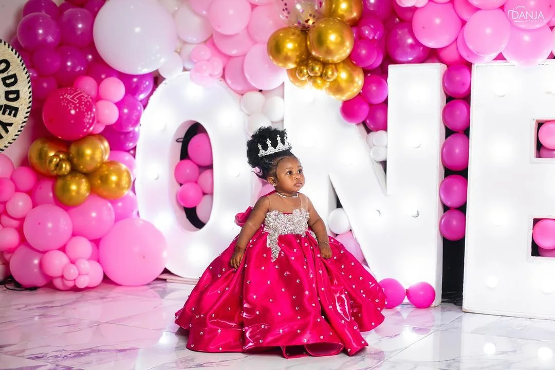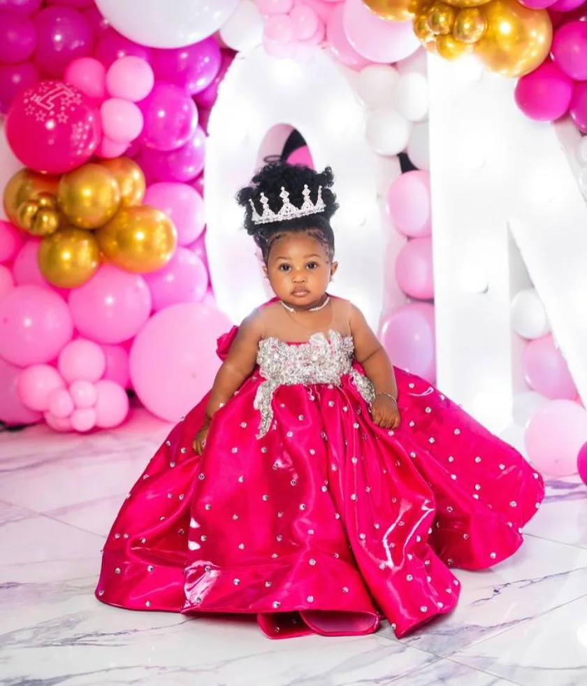Fuchsia Beading Girl's Birthday Party Dresses Customized Ball Gown Puffy Flower Girl Dress Princess Baby Kids Pageant Gowns