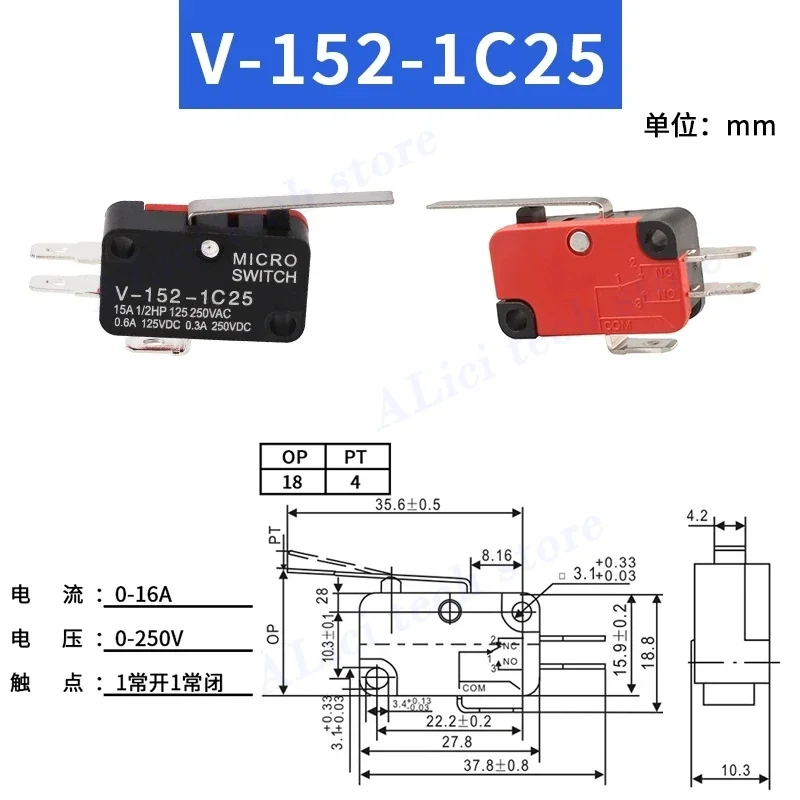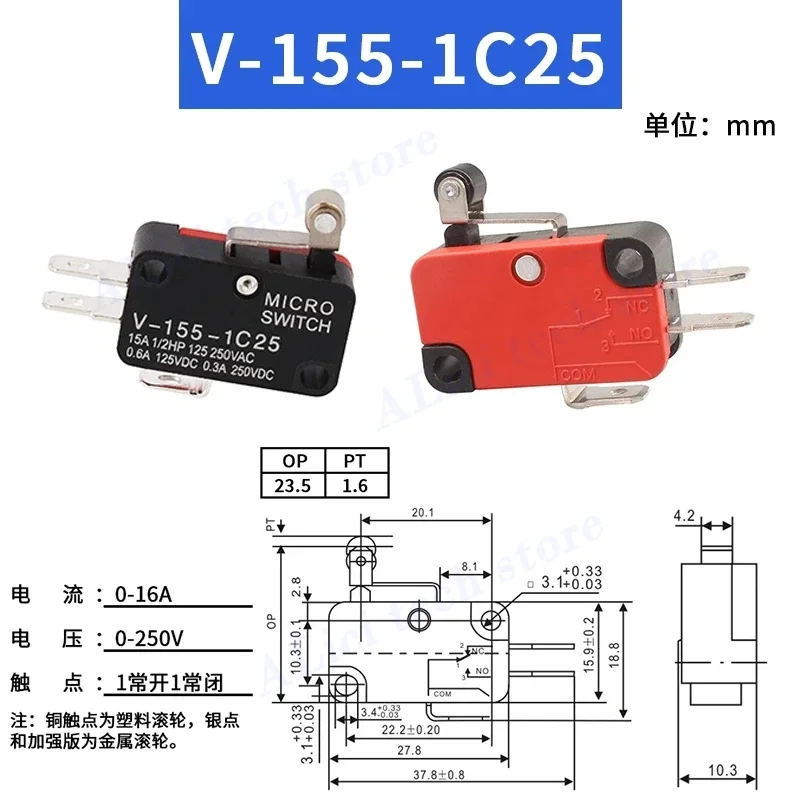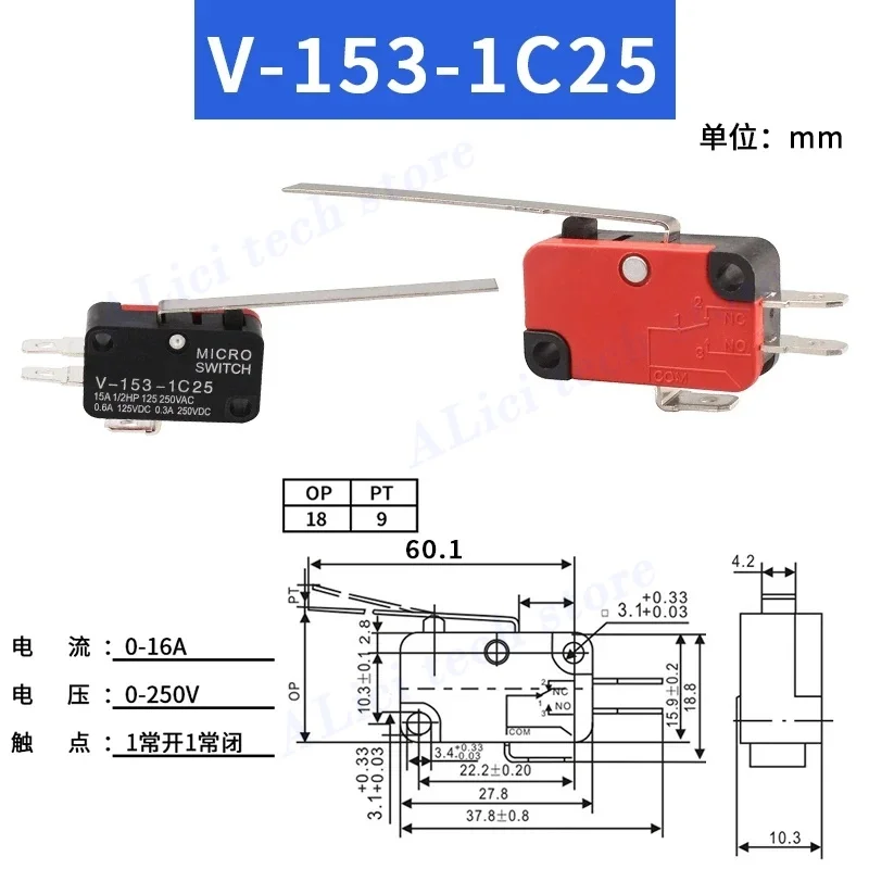 10PCS Microswitch Stroke Limit Switch V-15-1C25 V-151-1C25 V-152-1C25 V-153-1C25 V-155-1C25 V-156-1C25 Roller Long Handle Switch