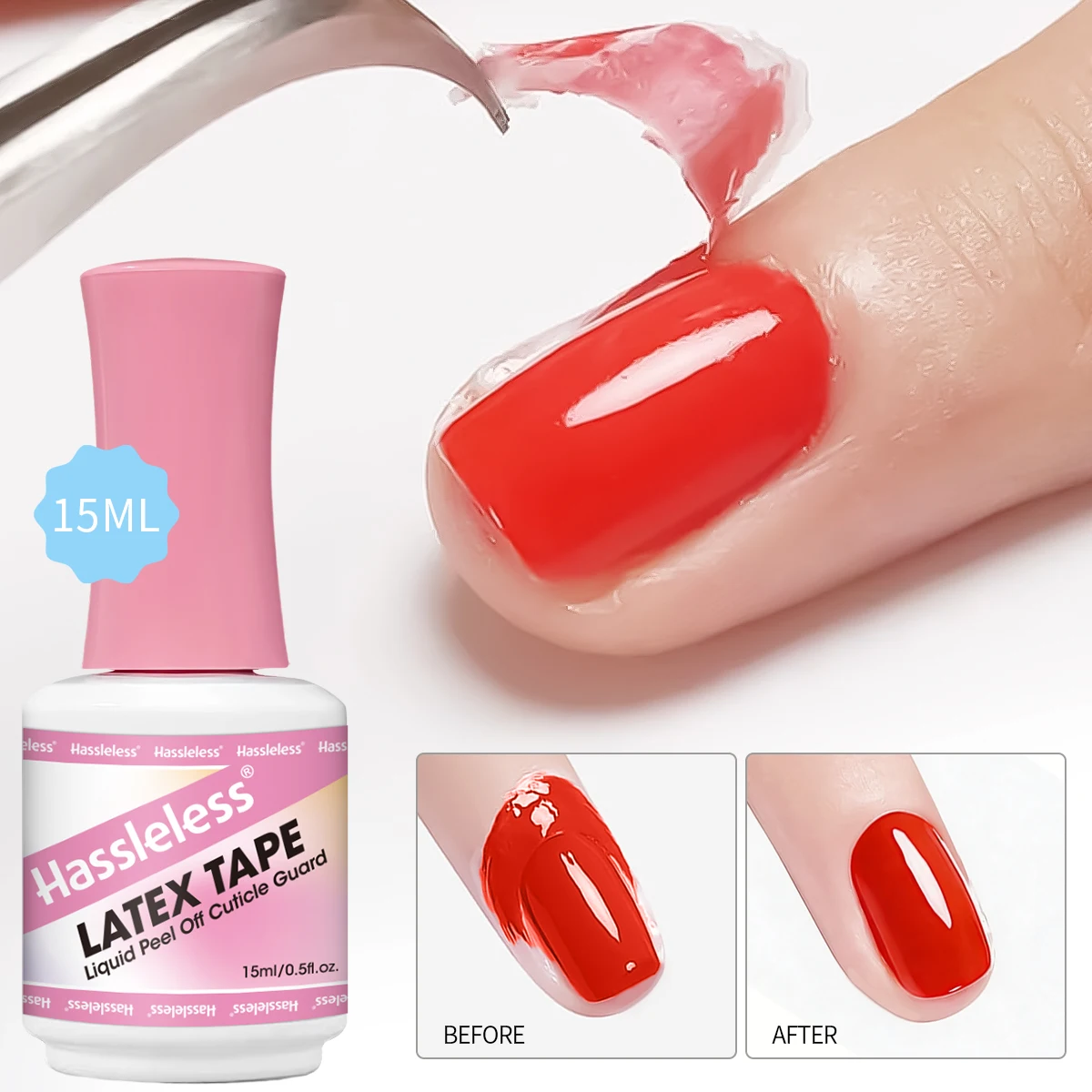 Hassleless 15ml nail peel-off liquid with spill-proof adhesive tape, gentle formula, peel-off cuticle protectant for nail polish