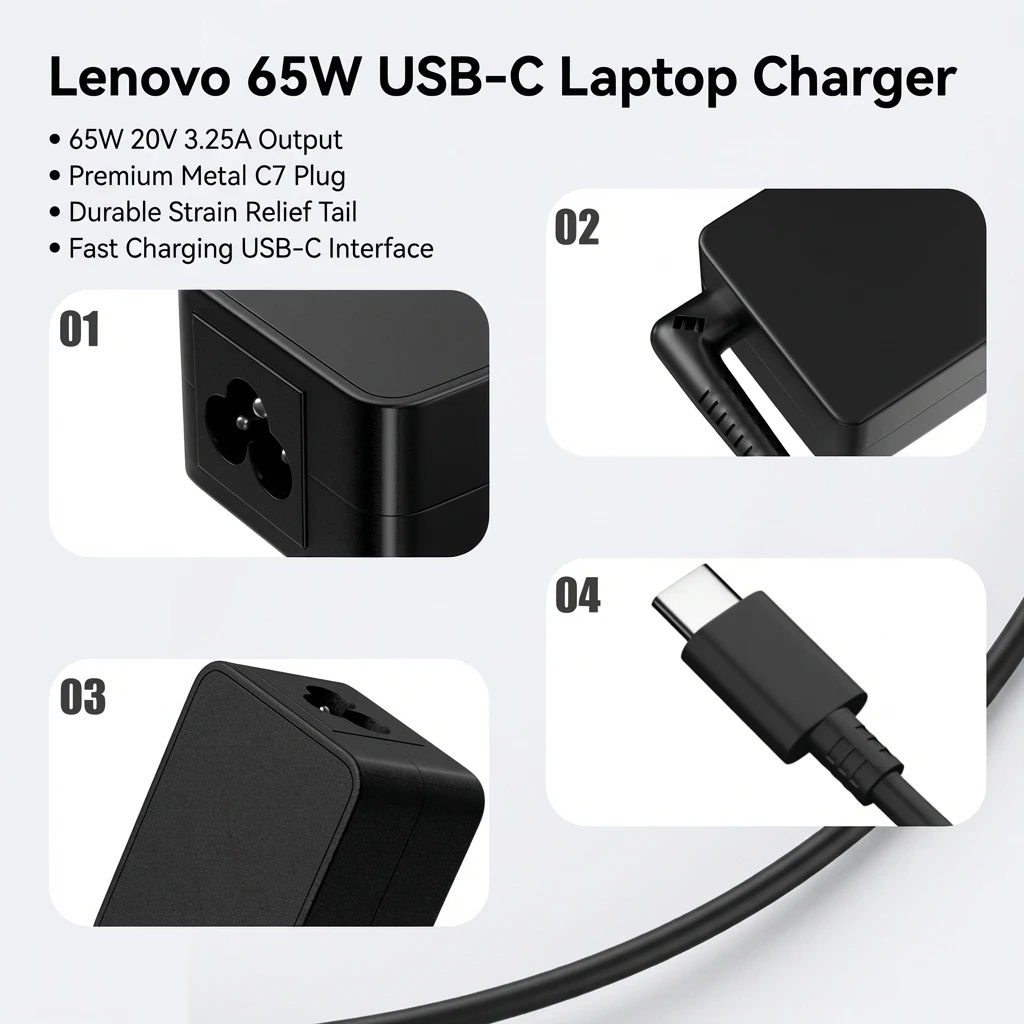NEW 20v3.25a 65w Type-c Power Adapter Laptop Charger for Lenovo Thinkpad X1 Carbon X270 X280 T580 P51s P52s E480 E470 S2
