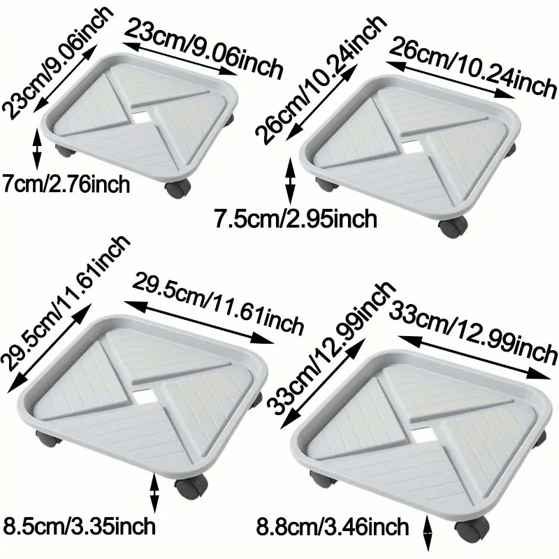 A Plant Ball Cage with Four Wheels and A Drainage Tray, A Square Flower Pot Mover, A Wheeled Garden Rolling Plant Rack