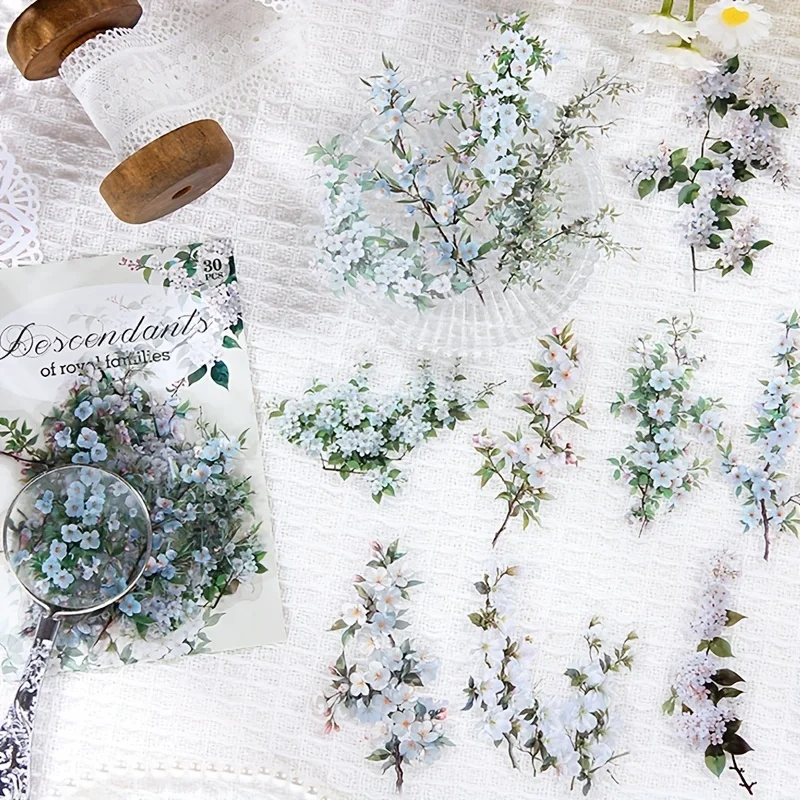 30 Pcs/Pack Vintage plant flowers PET waterproof sticker for DIY scrapbooking Journal Photo Album Decoration Materials Stickers