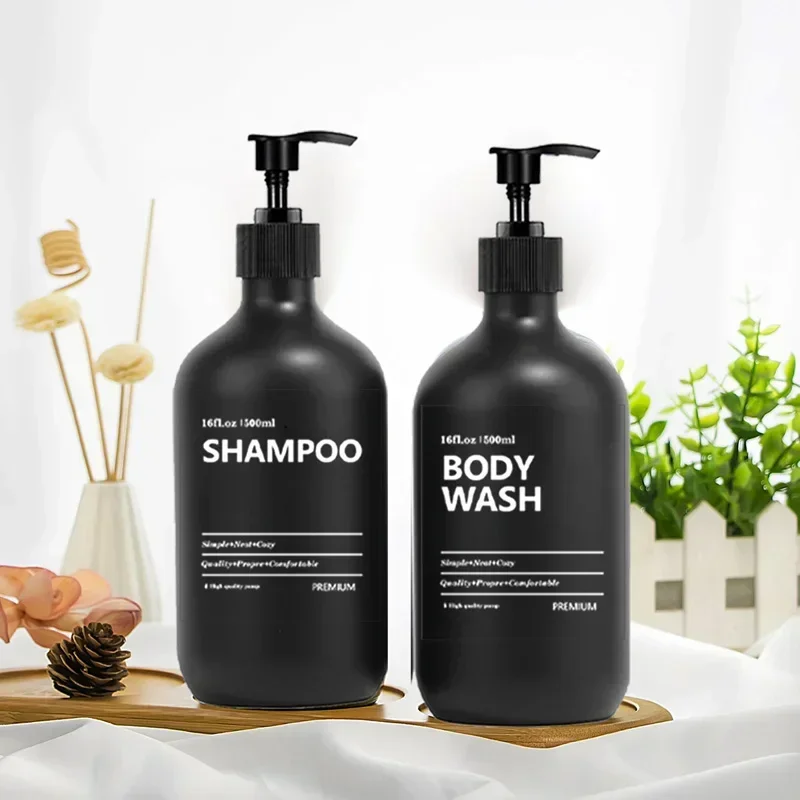 Matte Black Soap Shampoo Dispenser Shower Gel Conditioner Liquid Container Bathroom Lotion Bottle with 6/8/12 Labels 2/3PCS/Set