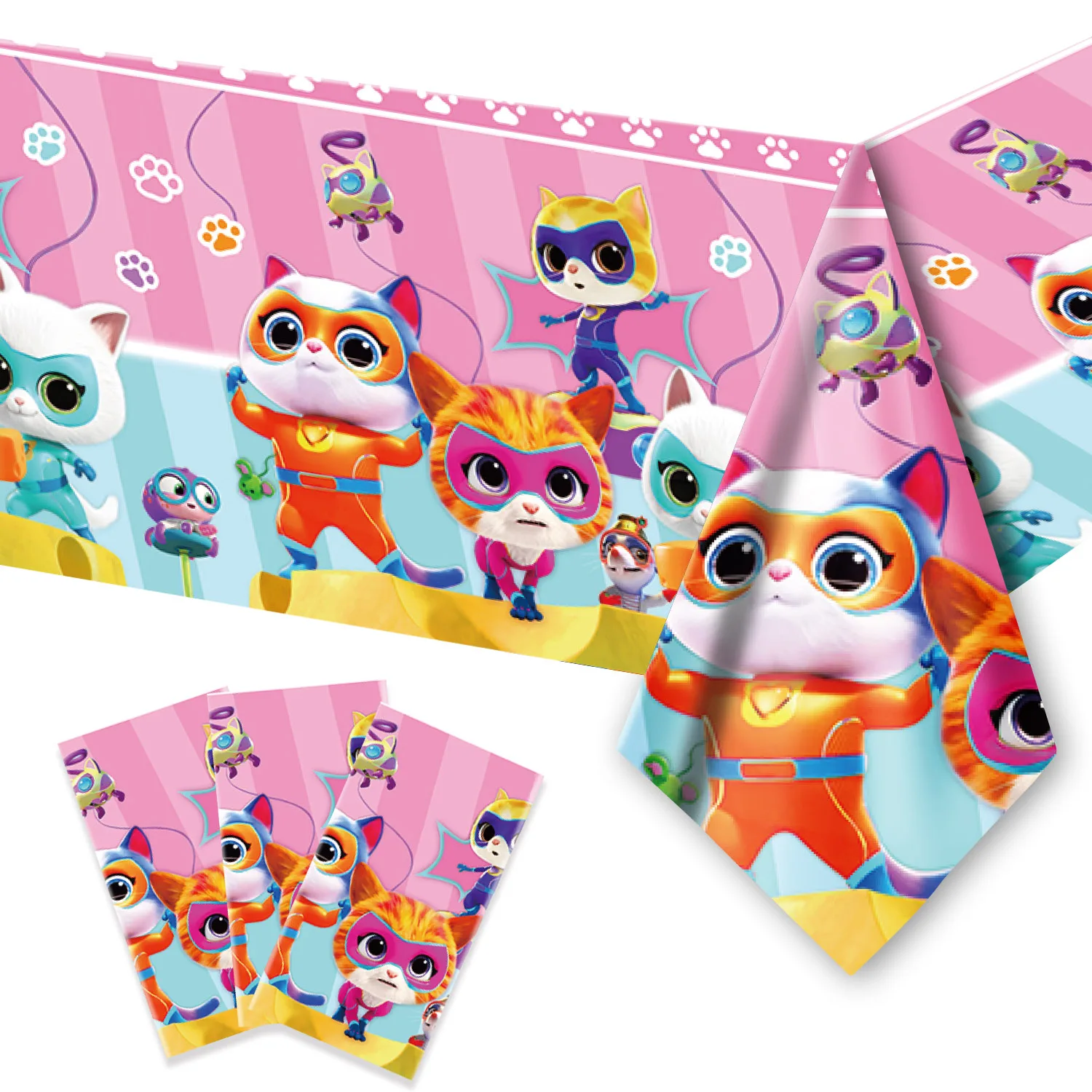 Superkitties Happy Birthday Party Decor Paw Meow Cat Super Kitties Tableware Tablecloth Plate Cup Gift Set Kid Party Supplie Toy