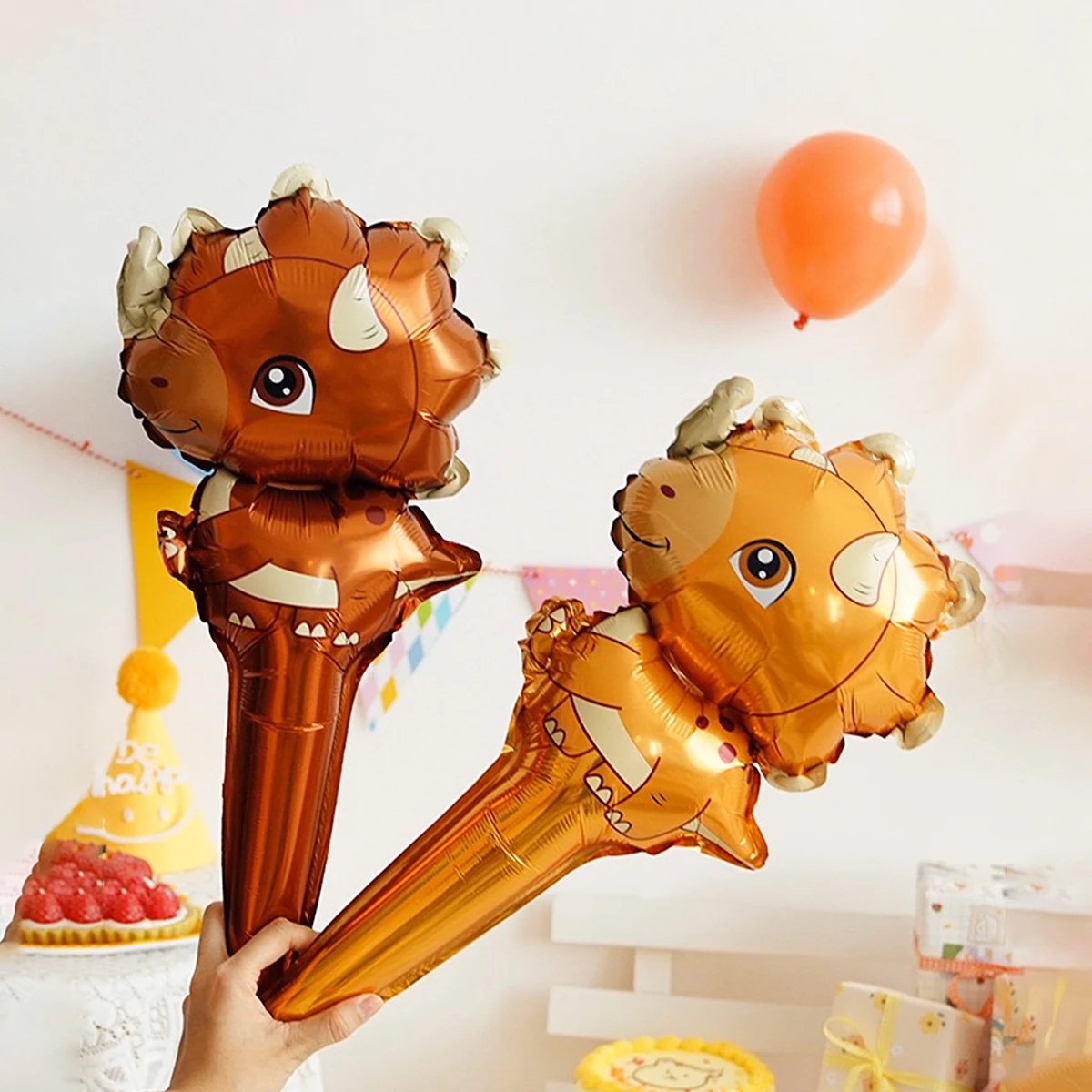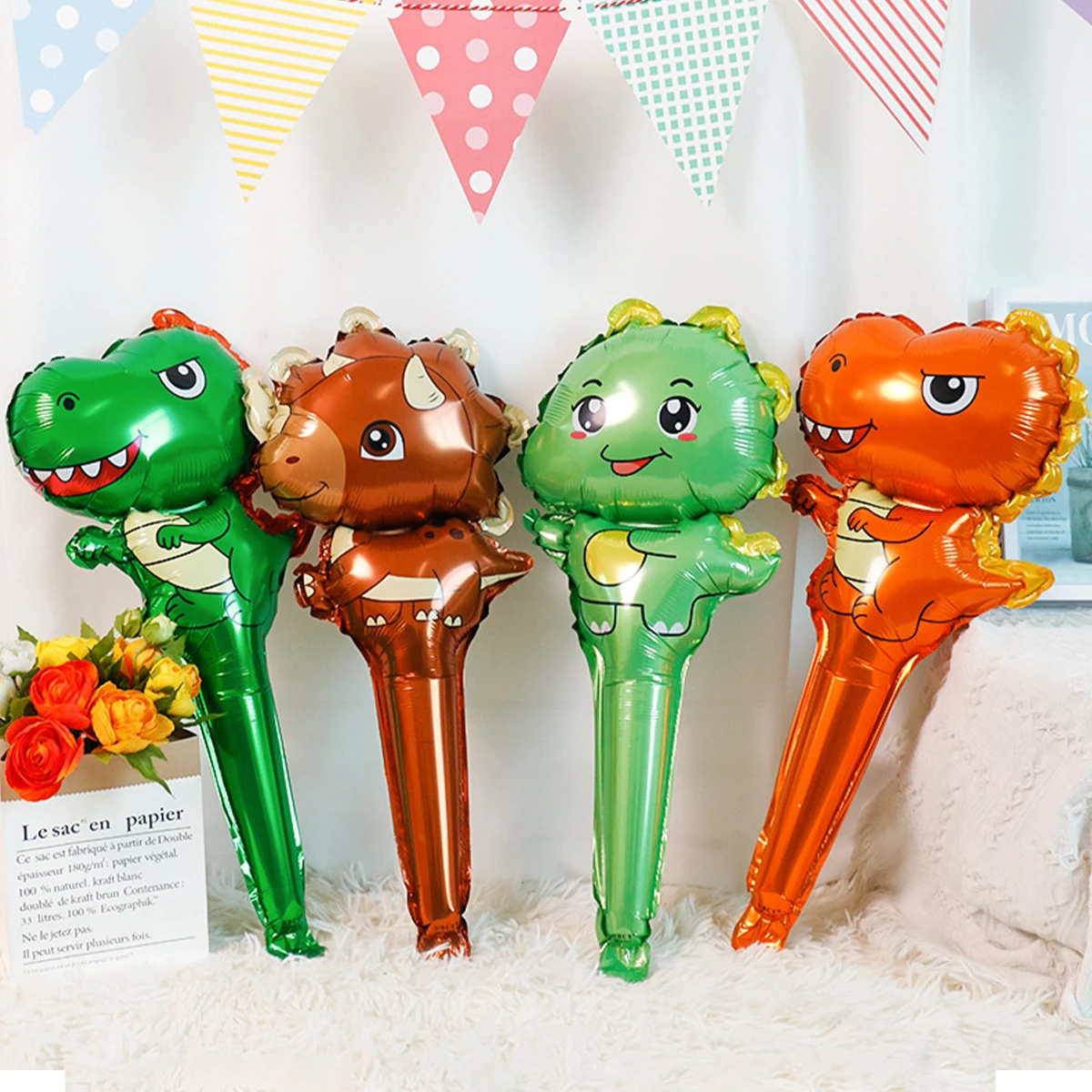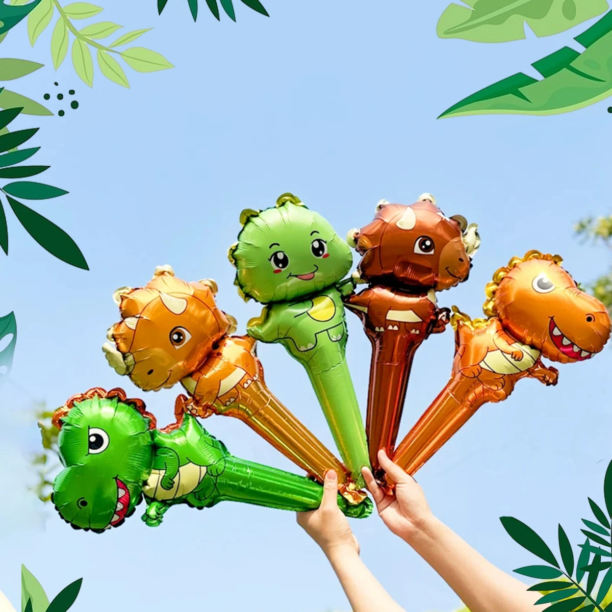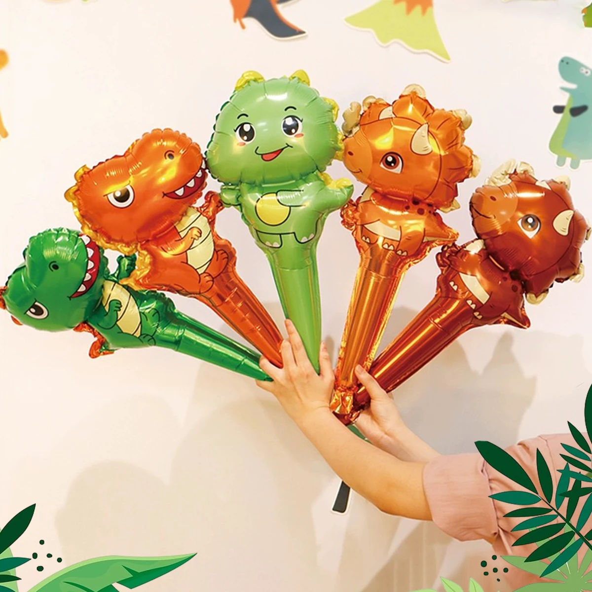 10pcs Dinosaur Cartoon Animal Hand Held Stick Aluminum Film Balloons for Boy Birthday Baby Shower Party Favors Decorations