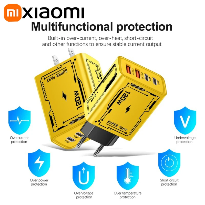 Xiaomi 120W Charger Ultra Fast Charging Type-C GaN Phone Charger USB-C QC 3.0 Phone Charger Adapter For iPhone Samsung Xiaomi