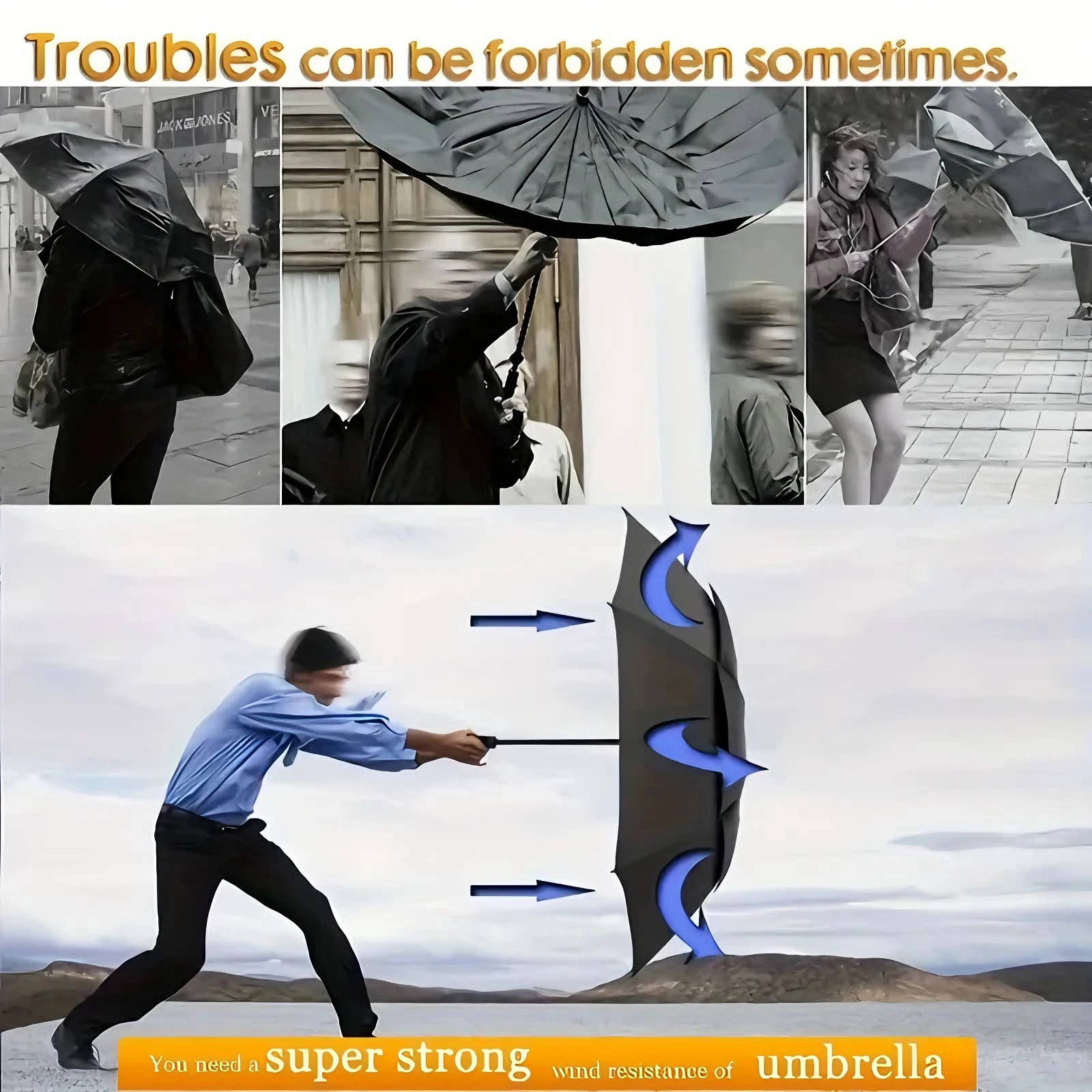 Double Strong Wind Resistant Umbrella Rain Women Large Folding Non-automatic Umbrellas Men Family Travel Business Paraguas