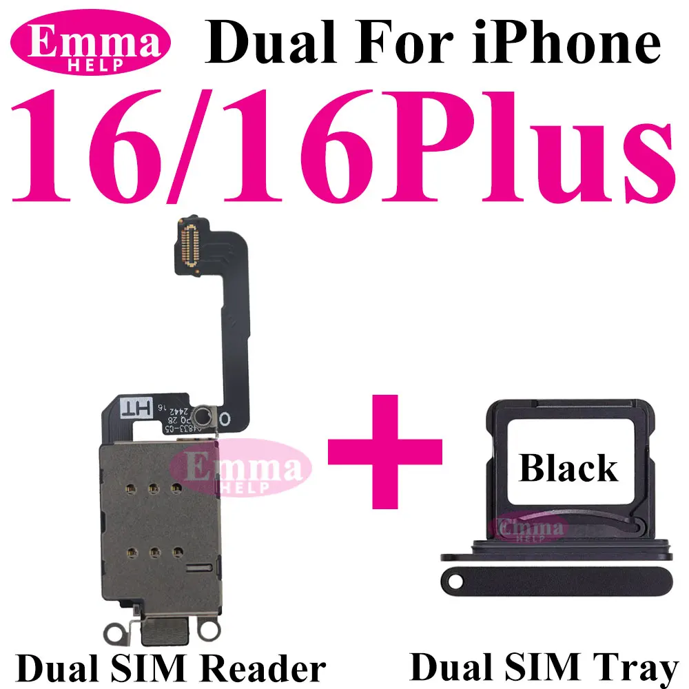 1set Dual Sim Card Reader Connector Flex Cable For iPhone 16 15 13 12 11 14 Pro Max XR Tray Slot Holder Adapter Replacement