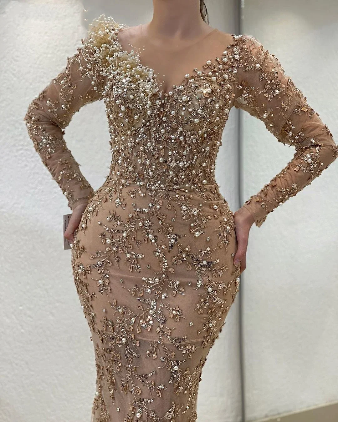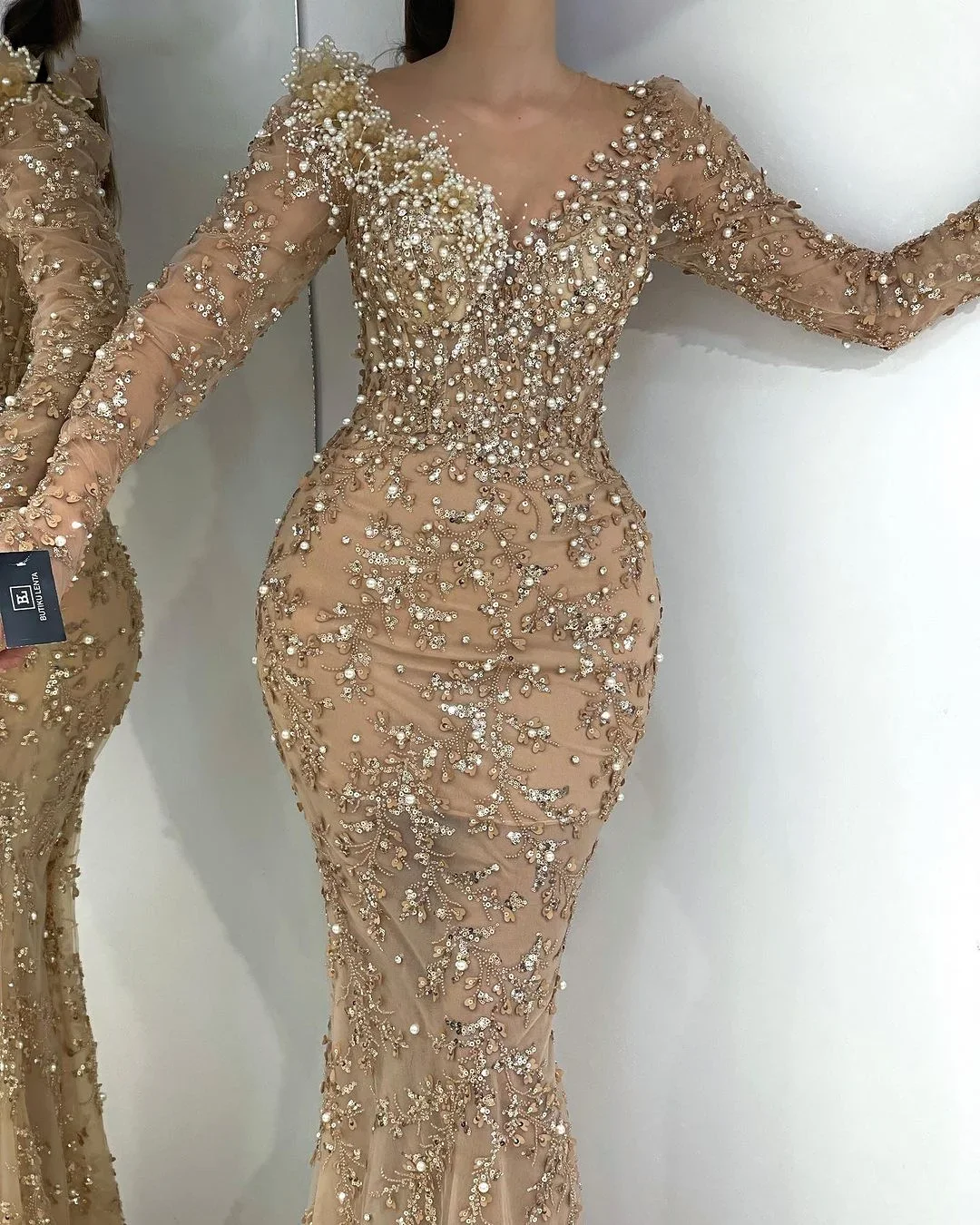 aliexpress , ali , shop , ali shop , online , prodavnica , online shop , online prodavnica , kupujem , prodajem , Vinca Sunny Champagne Sequined Mermaid Prom Dresses Long Sleeves Evening Party Gowns Pearls Cocktail Vestidos De Noche 2025
