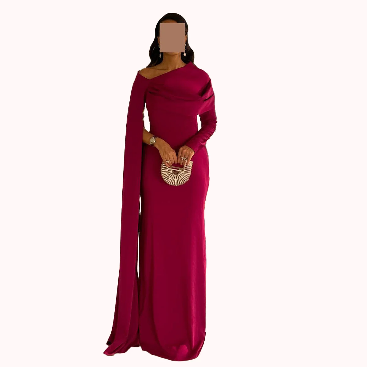 Women's Mermaid Evening Dresses Long Sleeve Prom Dress 2025 Floor-Length Wedding Guest Dress Side Strap With Ribbon Customized