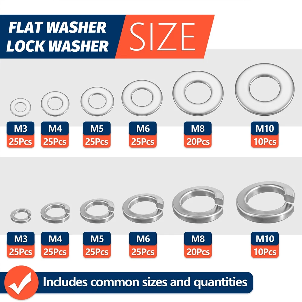 ALI shop - rezultati pretrage ... ... 260pcs Lock and Flat Washer Assortment Kit Stainless Steel M3 M4 M5 M6 M8 M10 Spring Lock Washers and Flat Washers Set ::: 2021 ::: :::