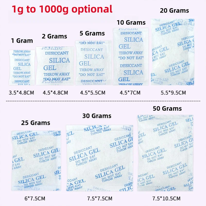 2/5/10/20/30/40/50/100/150/200/250/500 Gram Silica Gel Packs Transparent Desiccant Desiccant Packets Moisture Packs for Spices