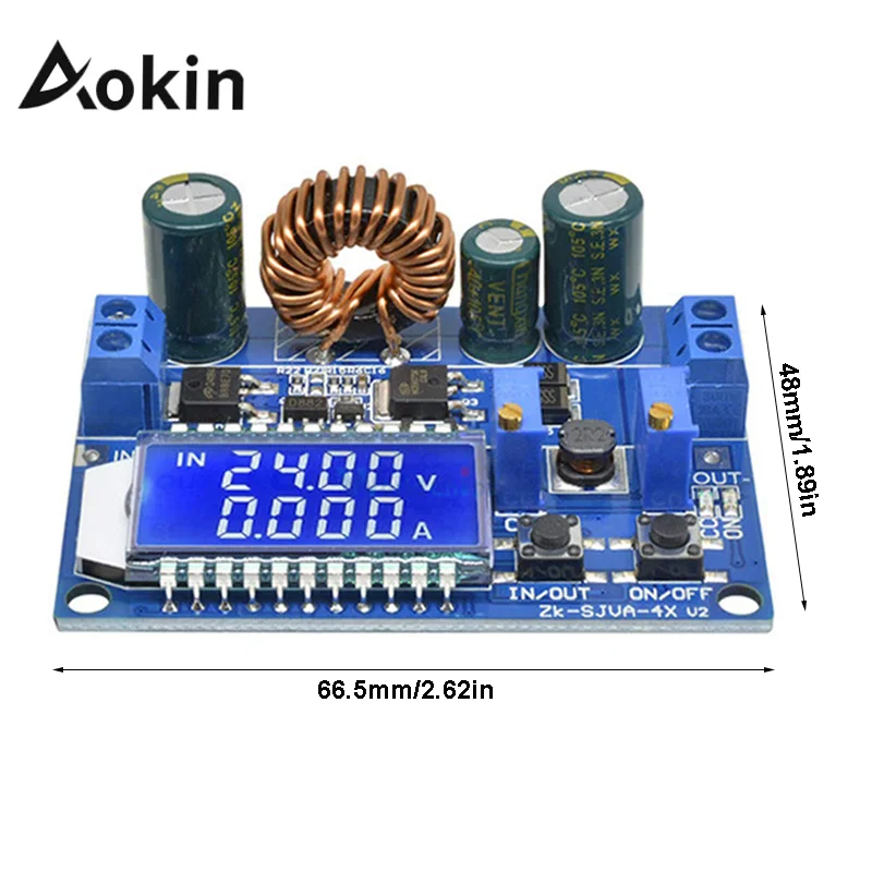 Aokin DC-DC Buck-Boost Converter Module 5.5-30V to 0.5-30V 4A 35W Adjustable Boost-Buck Display Power Module